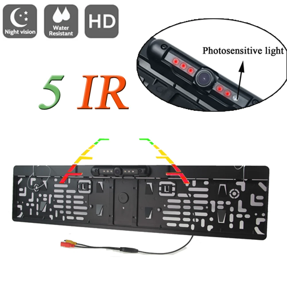 ПроводнаяБеспроводная рамка для номерного знака европейского стандарта, Hd камера заднего вида, 5 ИК и фоточувствительная подсветка, водонепроницаемая, с ночным видением
