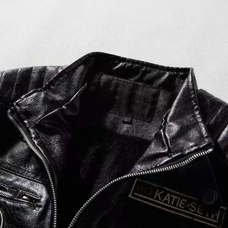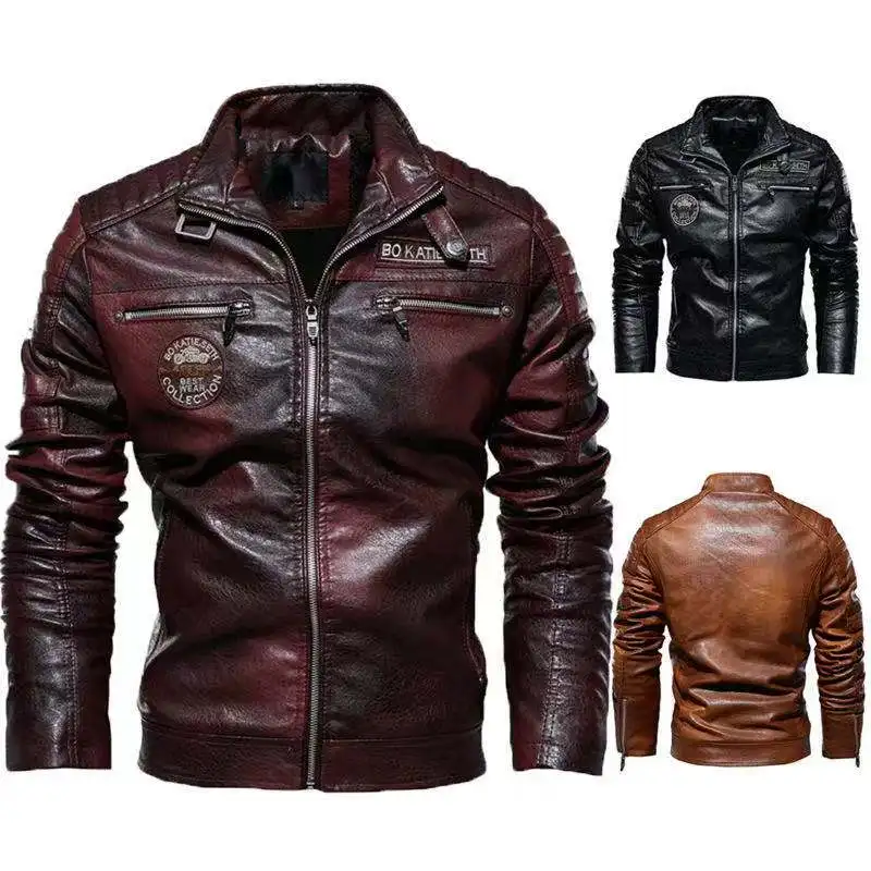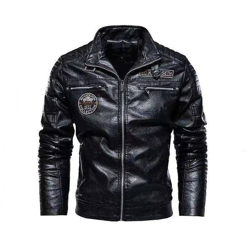 Куртка мужская из искусственной кожи, на молнии, с воротником-стойкой