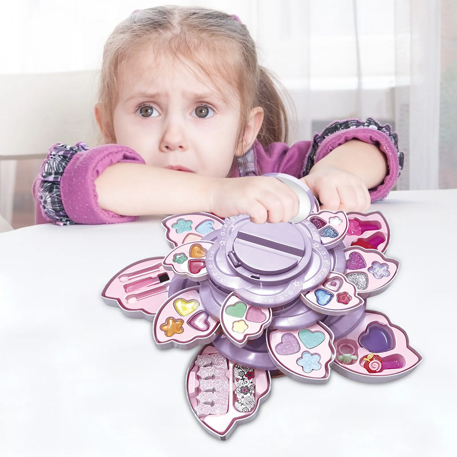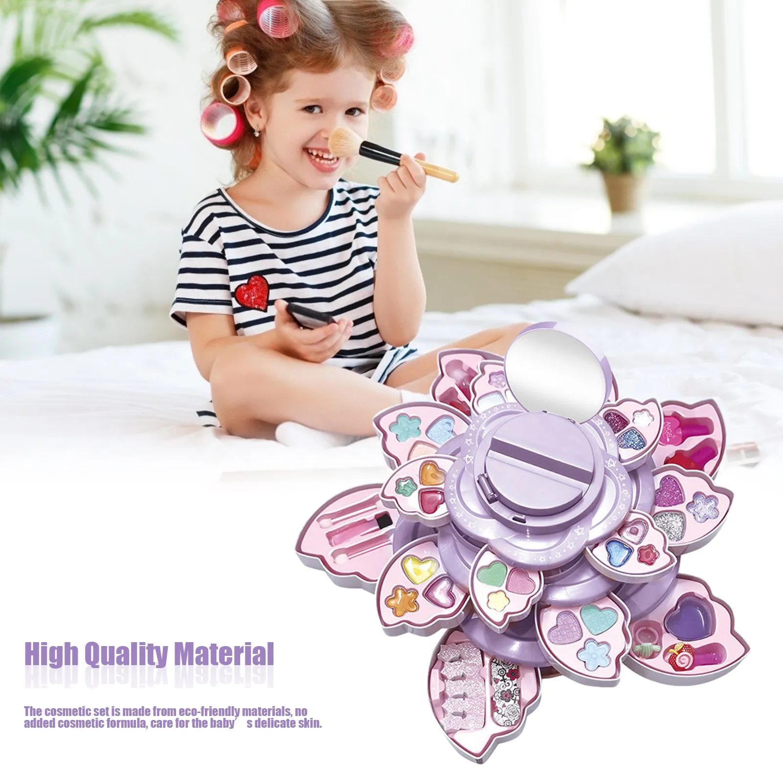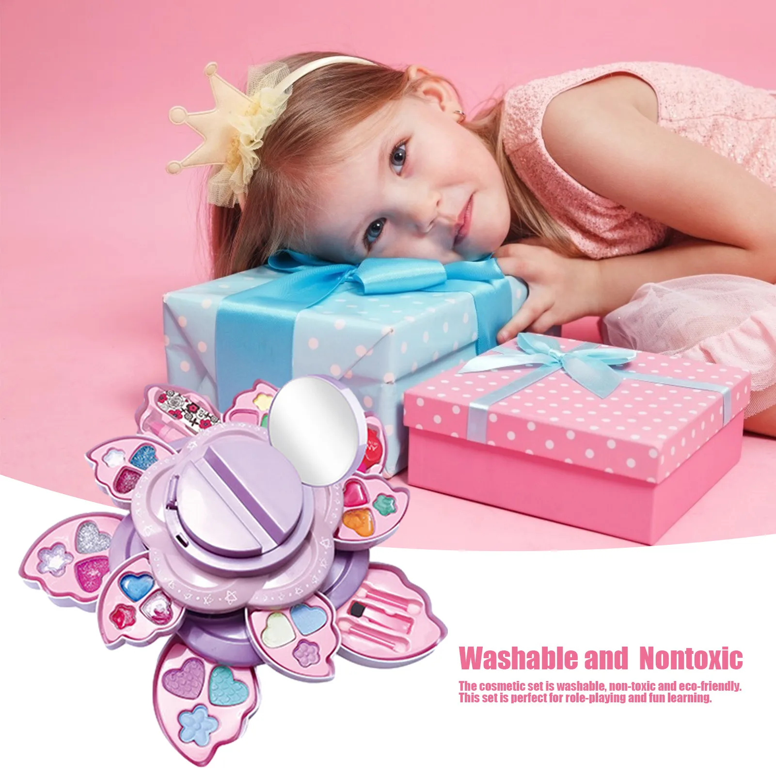 Точки пули:1. Высококачественный материал: косметический набор изготовлен из экологически чистого материала s, без дополнительной косметической формулы, забота о нежной коже ребенка.2. Ролевые игры, набор макияжа: с этим косметическим набором дети могут развивать социальные навыки и получать понимание ролевых игр.3. Полный комплект: рекомендуется для детей в возрасте 3 лет и старше. В комплект входит: имитирующий прессованный порошок, коробка для имитации теней для век, имитация лака для ногтей, губная помада, зеркало и многое другое, все они могут быть использованы в реальной жизни.4. Получайте удовольствие: идеальный набор включает в себя прессованный порошок, ногти и аксессуары для макияжа, что приносит много удовольствия вашему ребенку.5. Моющиеся и нетоксичные: косметический набор можно стирать, нетоксичный и экологически чистый. Этот набор идеально подходит для ролевых игр и веселого обучения.