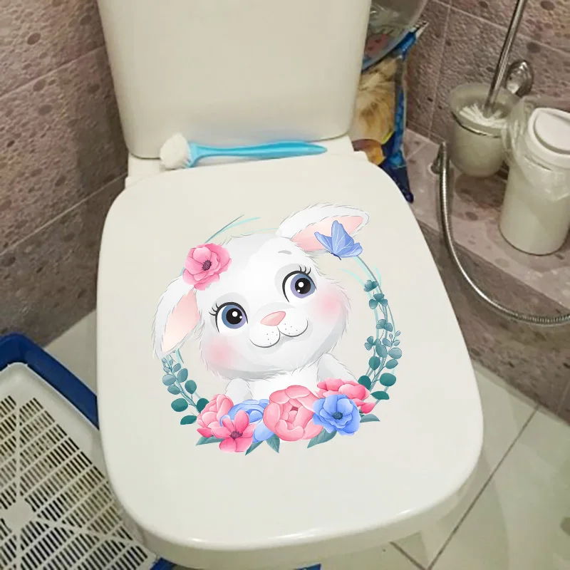 ZTTZDY 25 см 24,7 см гирлянда маленьким белым кроликом стикер для ванной, туалета дома, Украшение стен в комнате, T2-1032