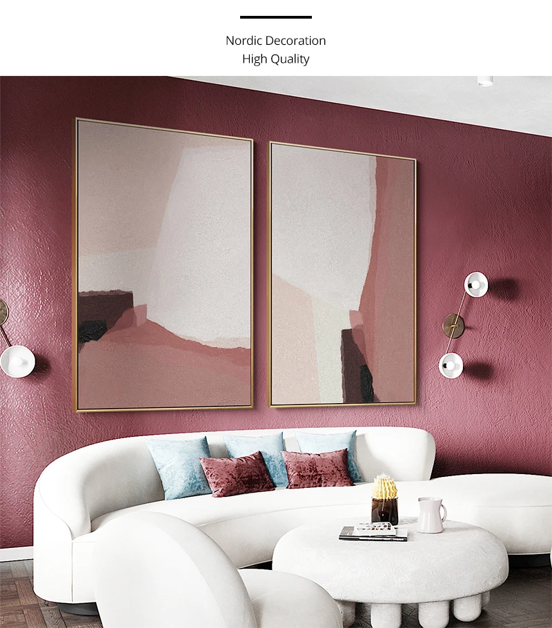 Настенная картина в скандинавском стиле с изображением розового пля...