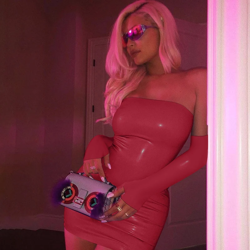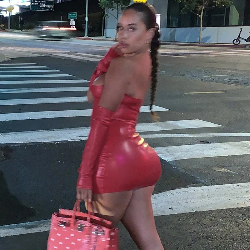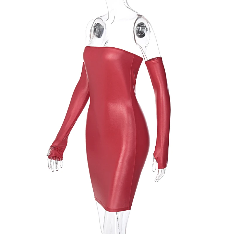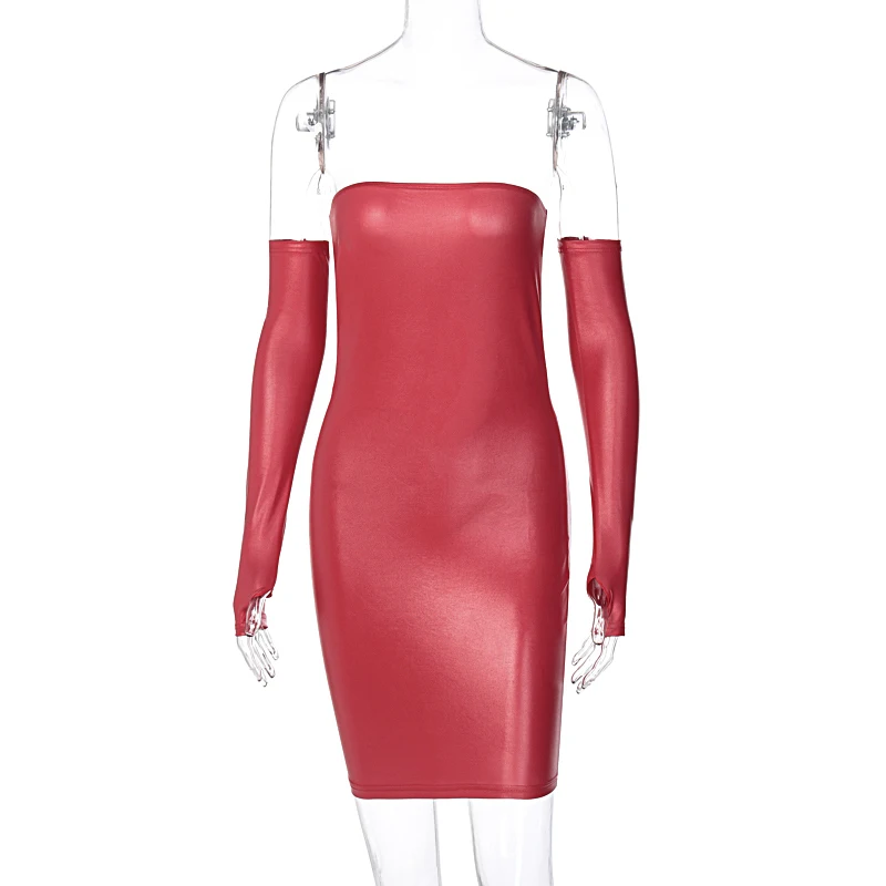 Платье женское из искусственной кожи с перчатками вечерние пикантное вечернее облегающее однотонное модное облегающее мини-платье с открытой спиной, клубная одежда