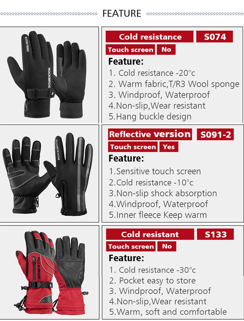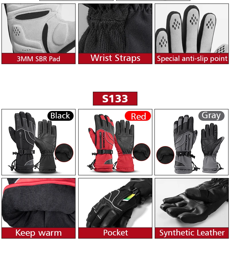 Ветрозащитные велосипедные перчатки ROCKBROS, мотоциклетные Зимние флисовые Утепленные перчатки, мужские перчатки для лыжного спорта, горного велосипеда, велосипедные перчатки для сенсорного экрана