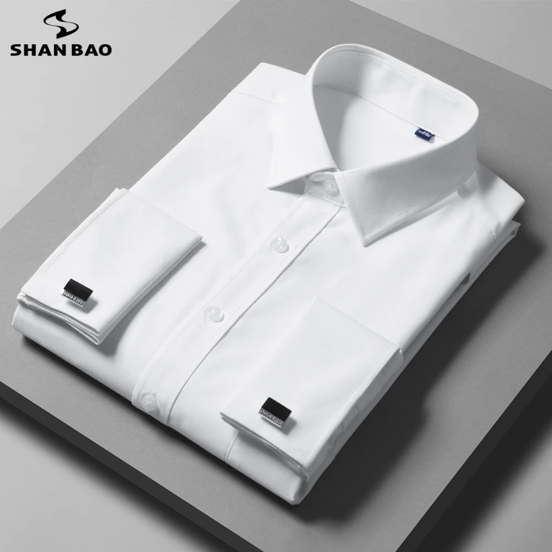 Мужская Праздничная рубашка из бамбукового волокна SHAN BAO, роскошная белая классическая брендовая деловая Повседневная рубашка для джентльмена с манжетами, 2021