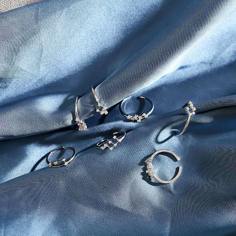 12 кольца с созвездиями для женщин, кубический циркон, Регулируемый...