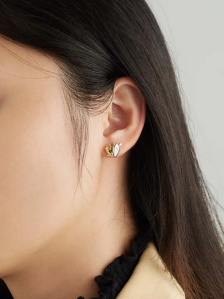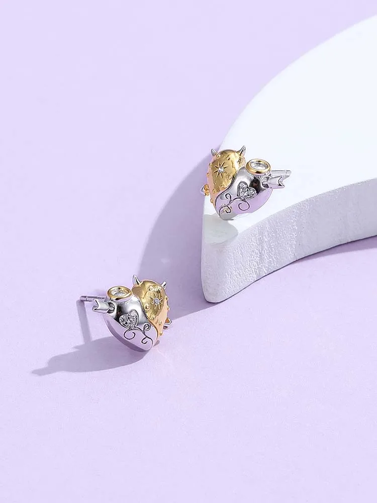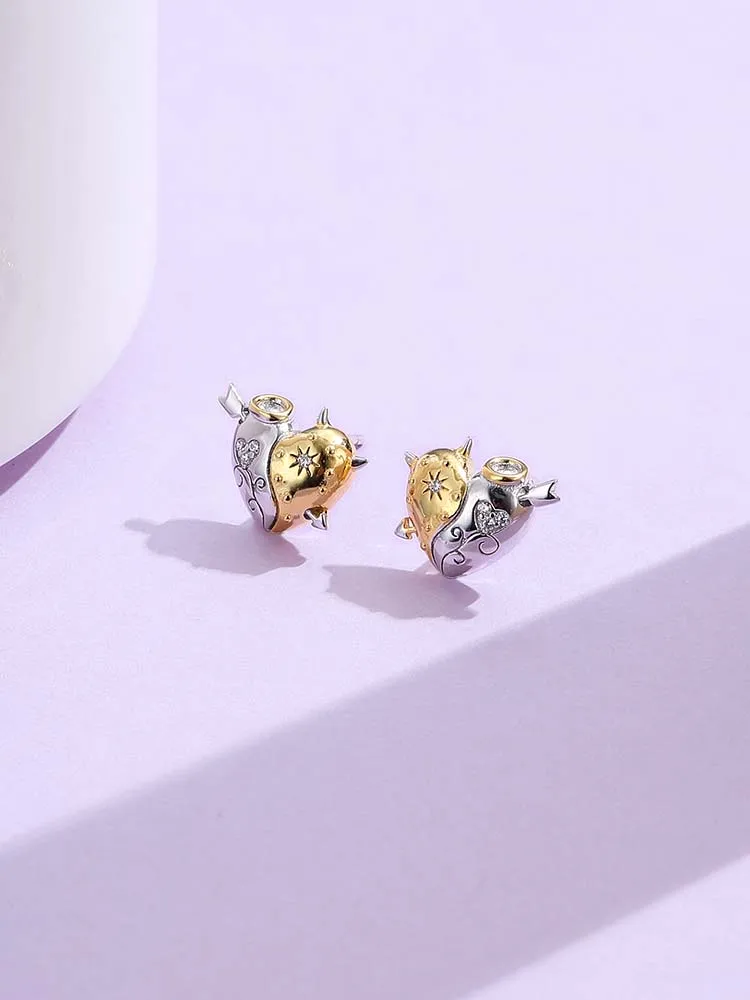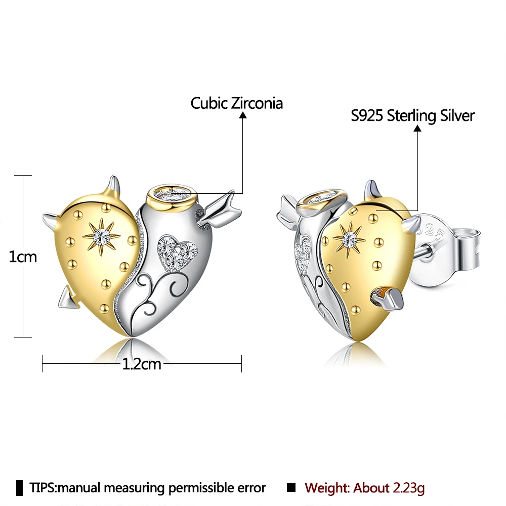 PFHOO 925 стерлингового серебра Ангел и демон, серьги в виде сердца для женщин Модный CZ для женщин не вызывающие аллергию серьги-гвоздики с квадратными кристаллами, ювелирное изделие для помолвки