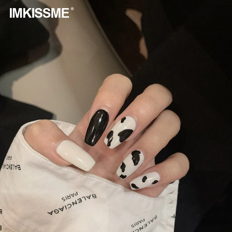 24 шт.кор. коровья печать накладные ногти носимые Длинные Леди полное покрытие Готовые Ногти с клеем