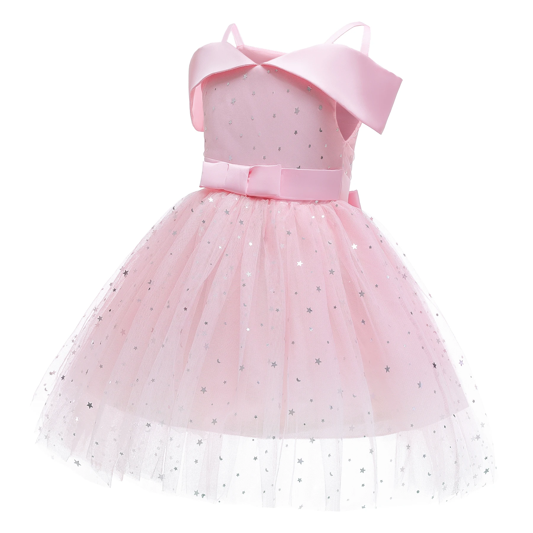 Наряд Свадебный для маленькой девочки, Сетчатое платье на бретелях с открытым плечом и звездами, вечернее платье для маленькой девочки