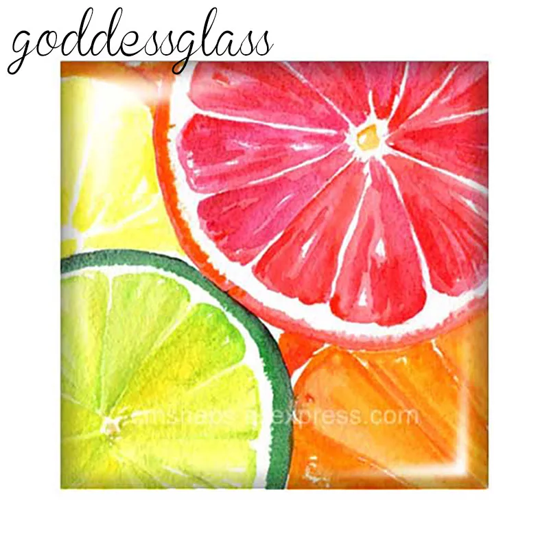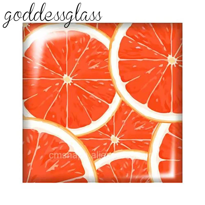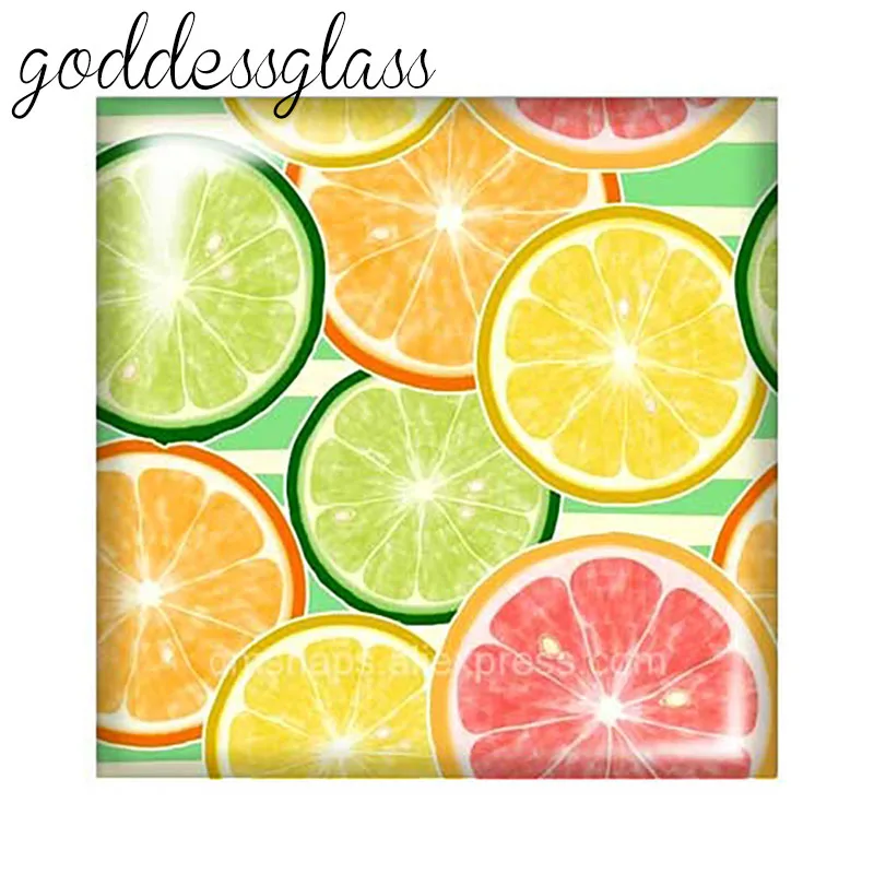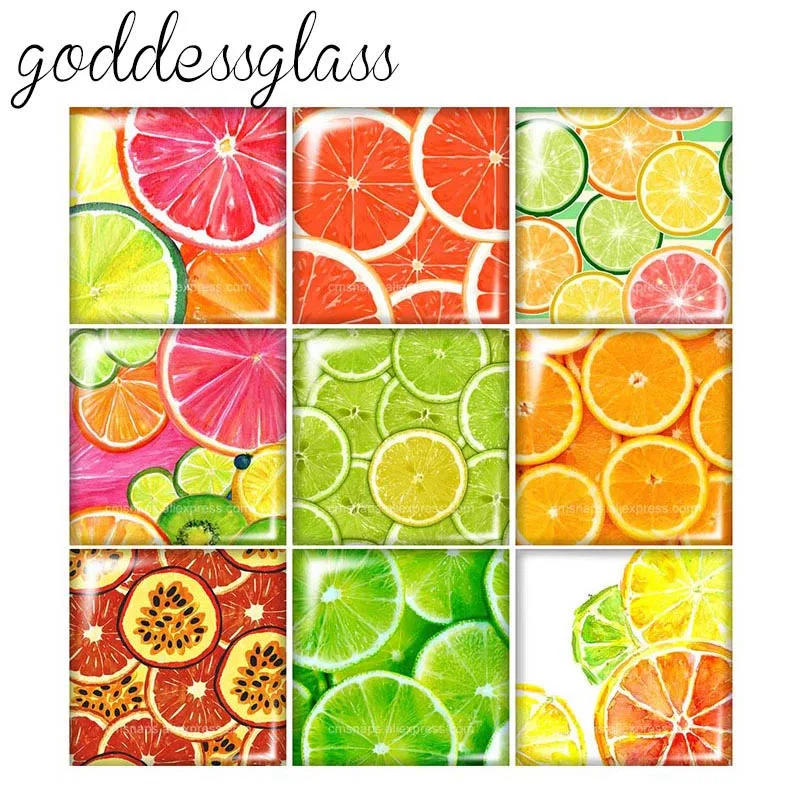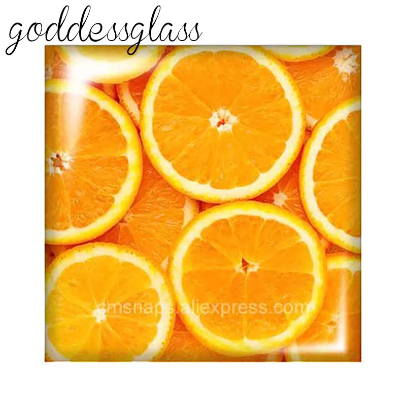 Новые милые фрукты, оранжевый, лимон, квадратные, 10 шт., смешанные, 12 мм20 мм25 мм30 мм, фото, стеклянный кабошон, фурнитура для изготовления с плоской задней поверхностью