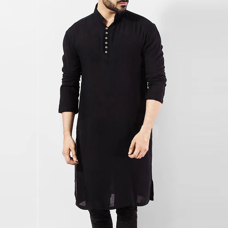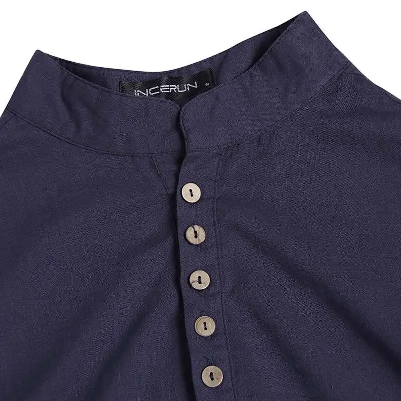 Мужская Повседневная рубашка INCERUN, хлопковая Однотонная рубашка с длинным рукавом и воротником-стойкой, уличная одежда, мусульманский кафтан в стиле ретро