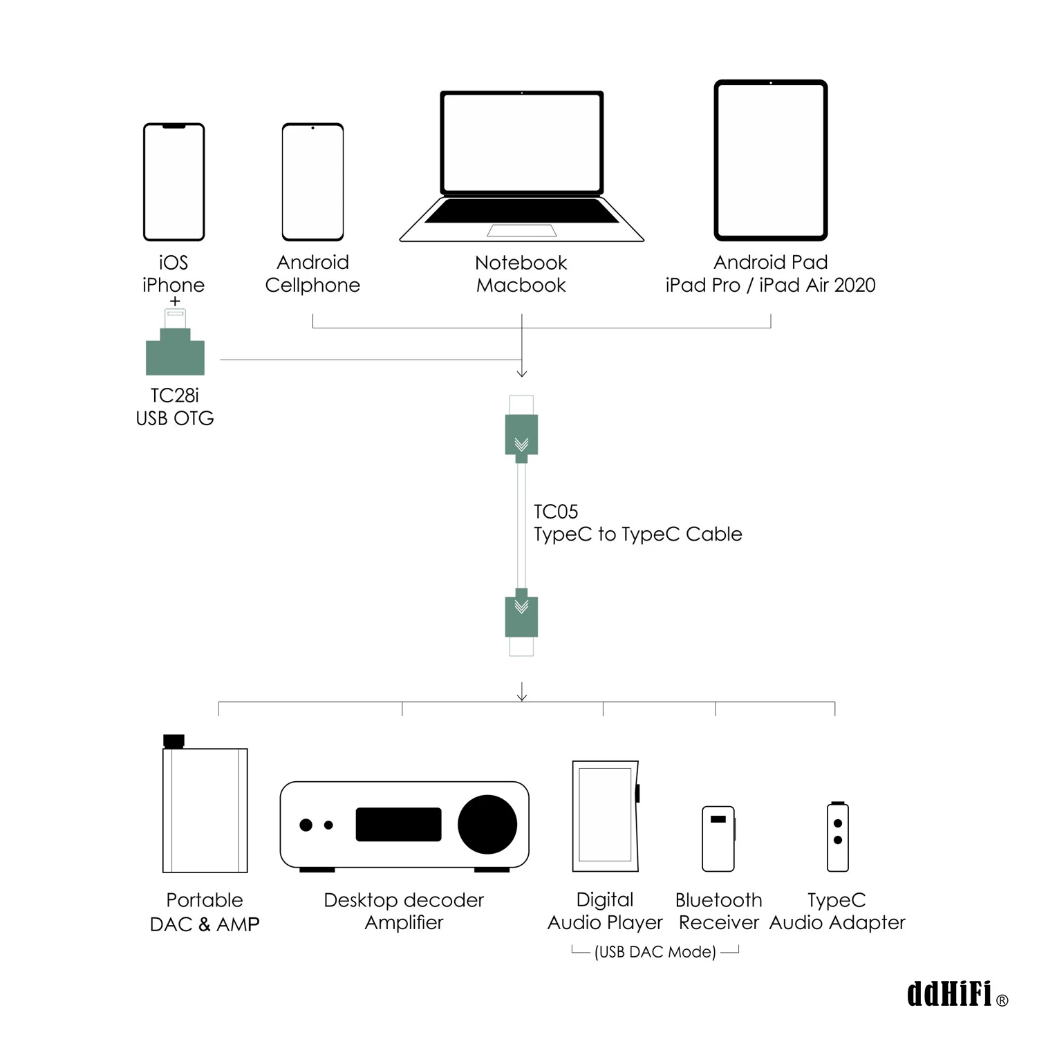 Кабель для передачи данных DD ddHiFi TC05 Type C-Type C, кабель для декодирования для музыкальных проигрывателейсмартфоновкомпьютеровусилителей для наушников