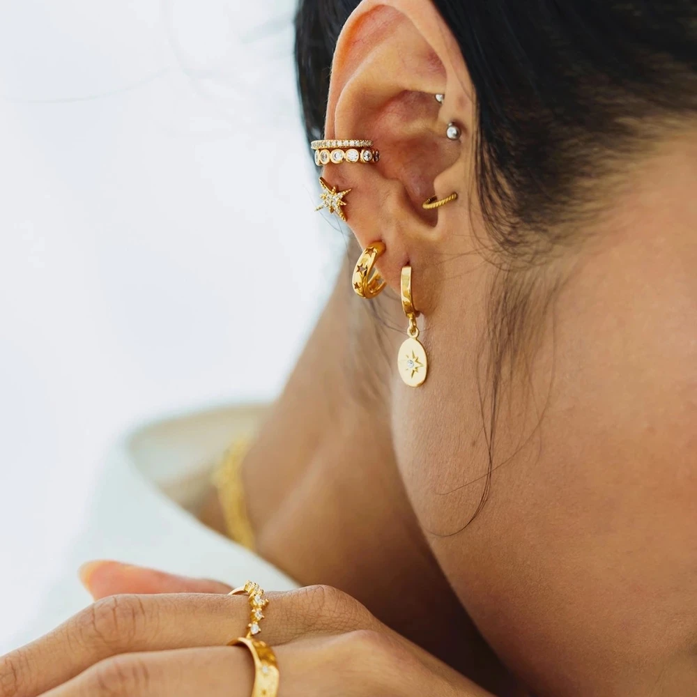 Высококачественные серьги-кольца Huggies с крошечной полой Луной и звездой, подвеска с гравировкой, изящные женские ювелирные изделия вечерние ринки и свадьбы, оптовая продажа