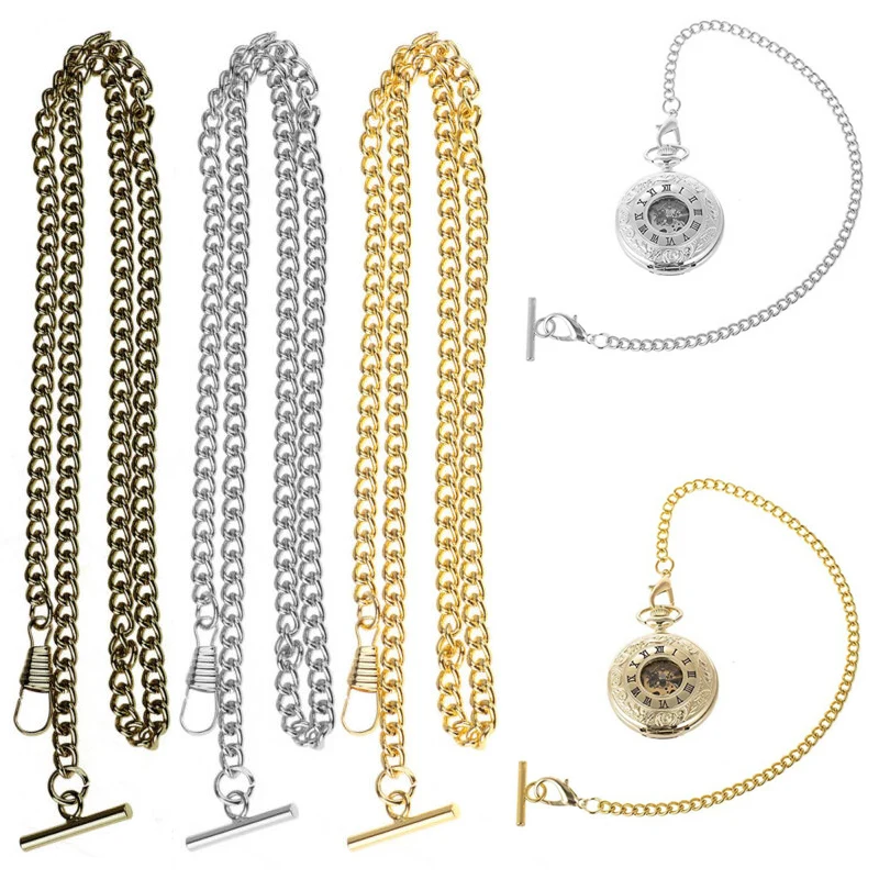 Винтажные карманные часы, Альберт, цепочка, пальто, жилет, джинсы, цепочки декора, металлическая зажим, Т-образная застежка, аксессуары для одежды сделай сам
