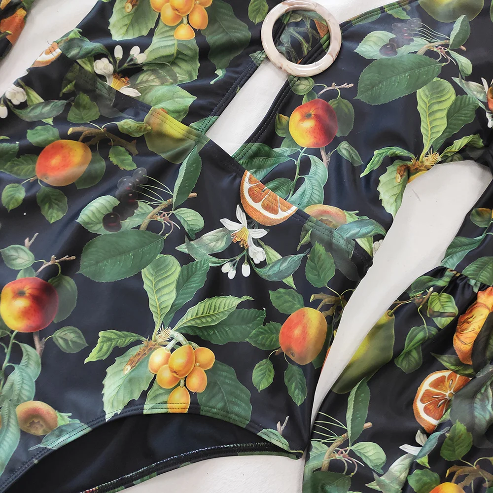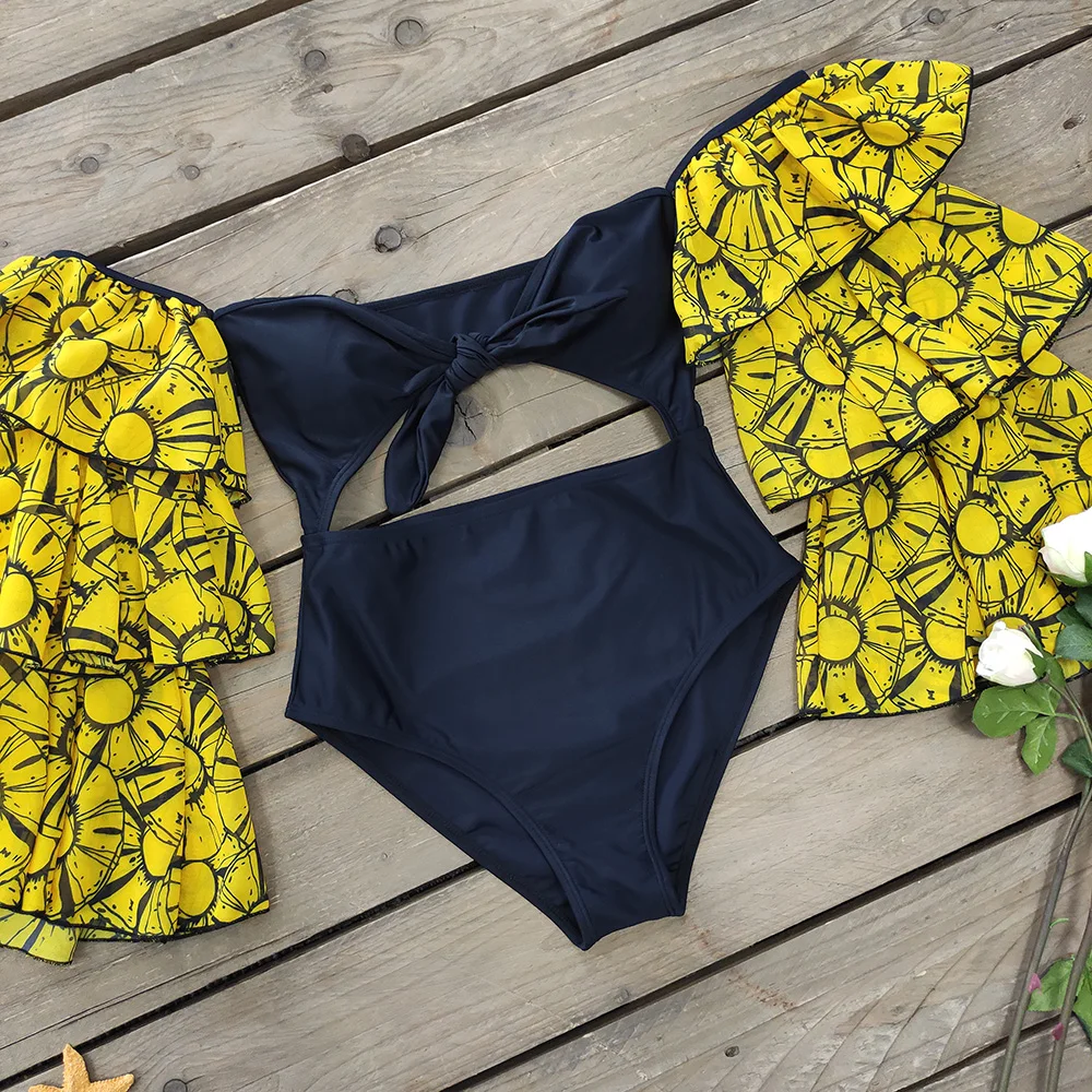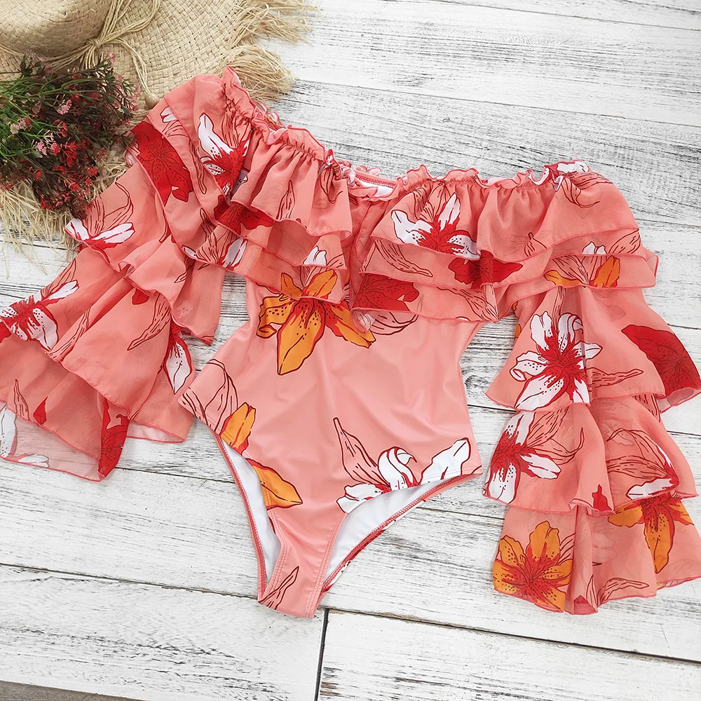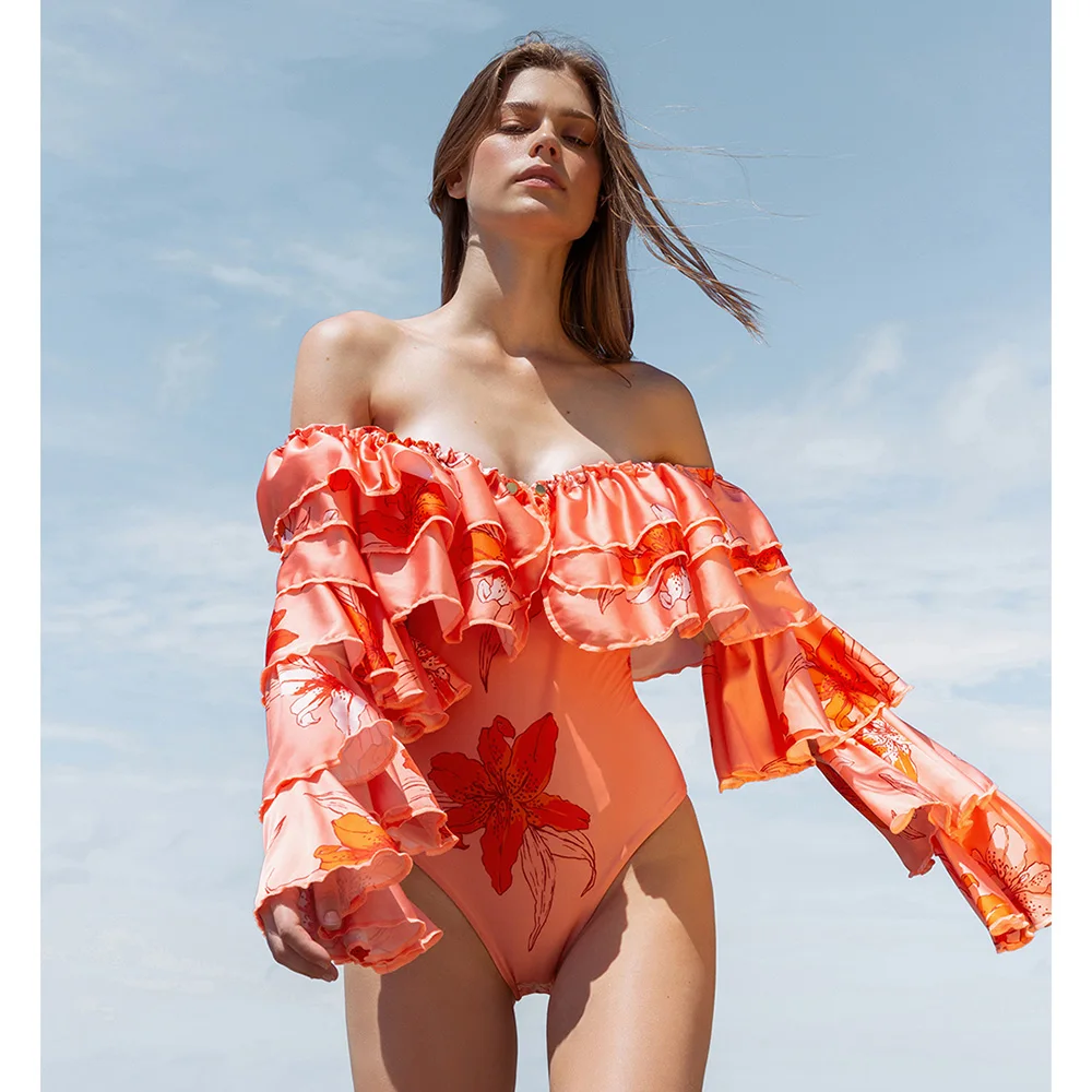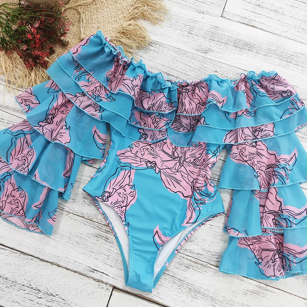 Сексуальный слитный купальник 2021, купальники с длинным рукавом, Женское боди с принтом и открытой спиной, женский купальный костюм со шнурками