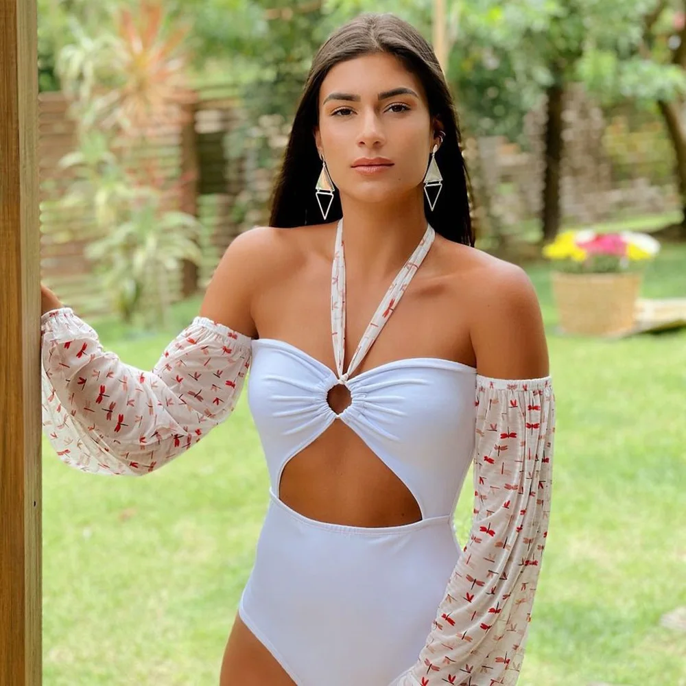 Очень эффектно купальник. Будет идеально для фотосессии. Смотрится полностью как на фото продавца. Длинный объемной рукав из шифона. Основа – купальная плотная ткань. Хорошо сидит. Прекрасно держит форму. В груди есть вкладки. На рост 172 впритык. На 88 – 60 – 94 села идеально. Качество отличное