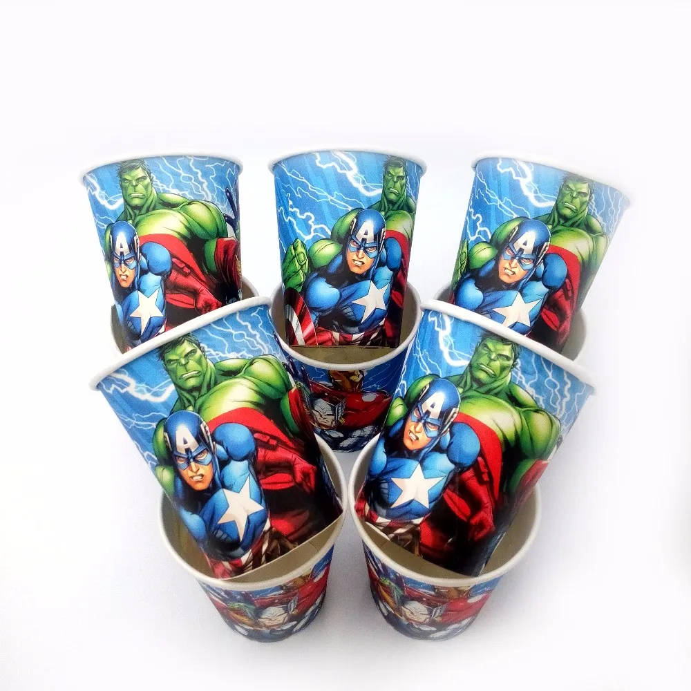 10 шт. Мстители вечерние Supplie День рождения вечерние украшения супергероя Халк, Железный человек, одноразовые Бумага чашка для детей Ванна пользу
