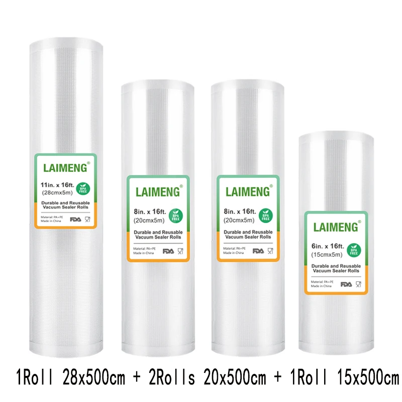 Особенности: Посылка: 1 рулон 28x500 см + 2 рулона 20x500 см + 1 рулон 15x500 см 1. Безопасность пищевых продуктов-материал, не содержащий BPA для хранения сырой и приготовленной пищи в морозильной камере, sous vide приготовления пищи и микроволновой печи (Примечание: мешки должны быть проколы перед нагревом в микроволновой печи и быть менее 60 секунд на среднем низком нагреве). Без химической экссудации, без растворителя, без остатка тяжелых металлов и запаха. 2. Сверхмощное коммерческое качество-разработан с 3 mil передней панелью, 4 mil тиснением задней панели для максимальной защиты и свежести пищи до 5 раз дольше, чем традиционная упаковка. Предотвращает ожоги морозильной камеры, глазурь и обезвоживание. 7 слоев коэкструдированного процесса тиснения делает его более сильным и более устойчивым для проколов и разрывов. 3. Работает со всеми вакуумными упаковочными машинами-универсальная конструкция мешка работает со всеми зажимными вакуумными системами вакуумного теплового упаковщика. Прост в использовании. Еда и экономия денег. 4. Длина вакуумного ROLLS--CUSTOMIZE подходит для любой пищи, которую вы храните: нарежьте рулон на любую длину, которая вам нужна, означает, что не тратьте впустую материал или неустойчив «не совсем подходит». 5. Сертификат: FDA, LFGB, ROHS, REACH, SCCP, PAHS Спецификация: Материал: Пищевая мембрана, без BPA Цвет: прозрачный Использование продуктов: мясо, закуски, орехи, бобы и сладости