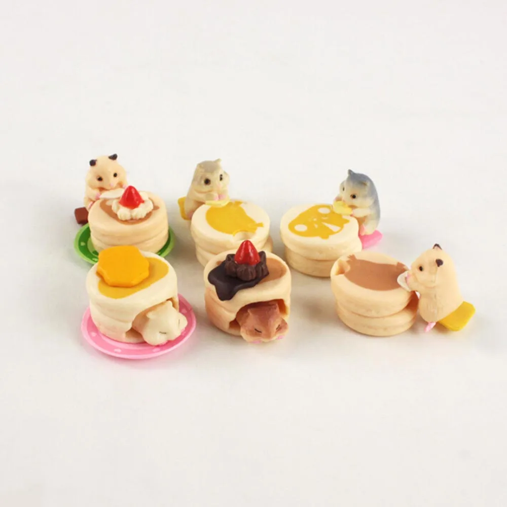 6 шт.лот 2 см фигурка хомяка Милая Мини мышка с гамбургером еда ПВХ модель игрушки кукла подарок для детей на день рождения