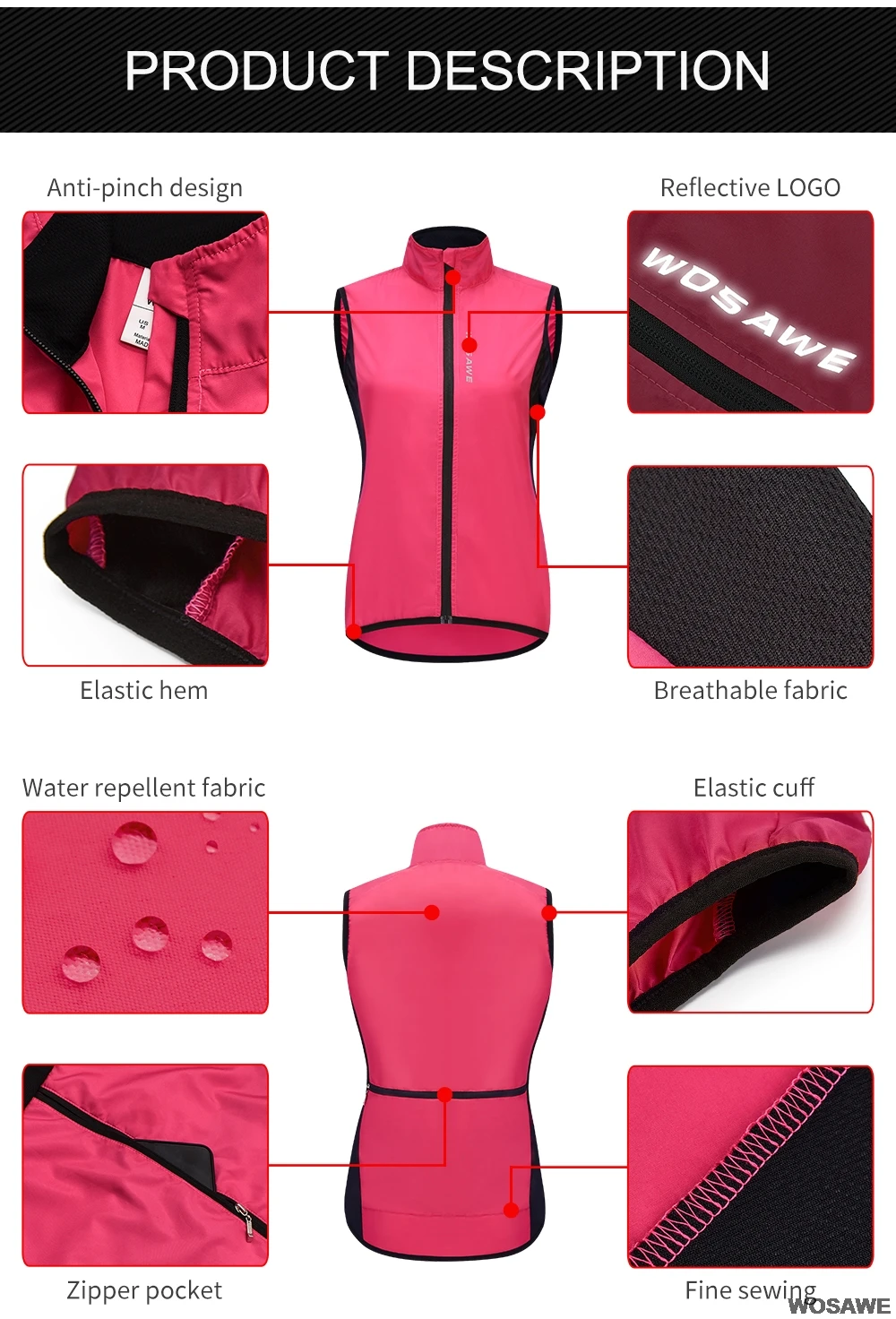 Женский велосипедный жилет WOSAWE, ветрозащитный светоотражающий жилет без рукавов для горного велосипеда, Спортивная быстросохнущая куртка для бега и верховой езды