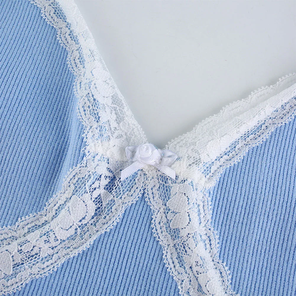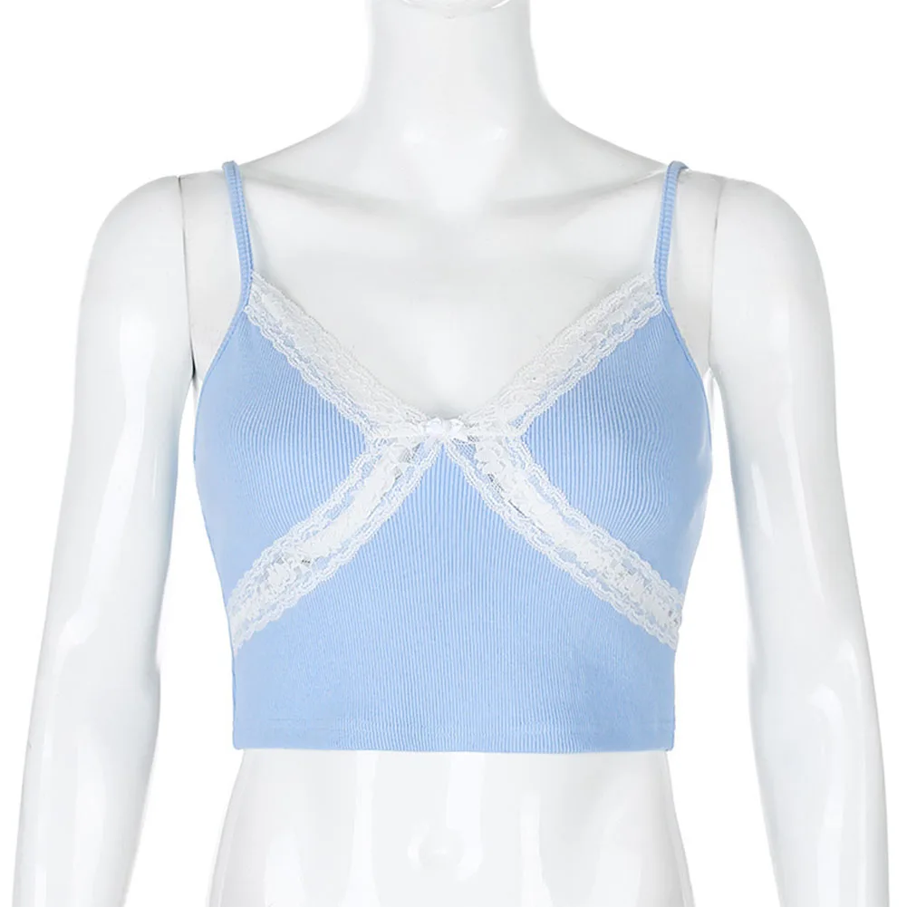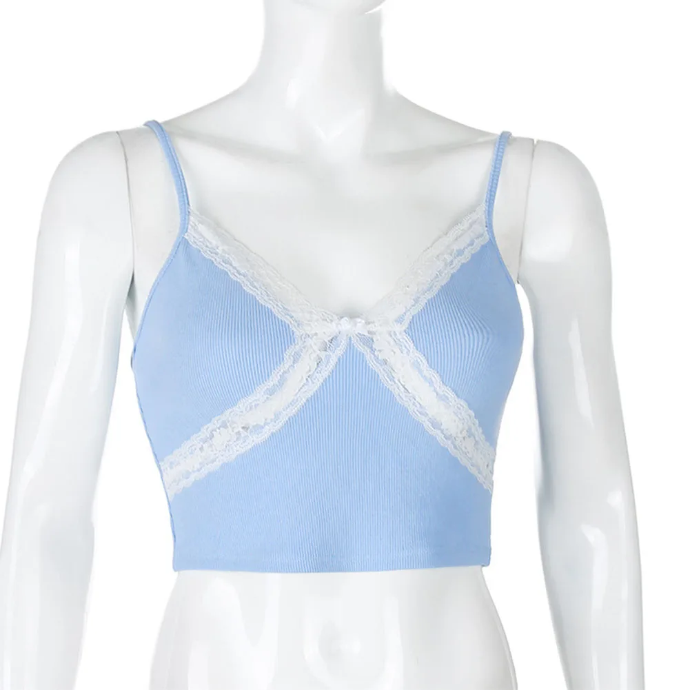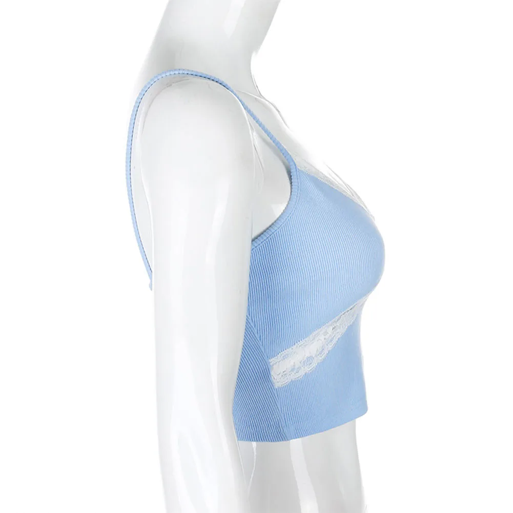Женский летний топ на бретельках с глубоким v-образным вырезом и открытой спиной, кружевной комбинированный сексуальный укороченный топ, уличная одежда, майка, топы 2020