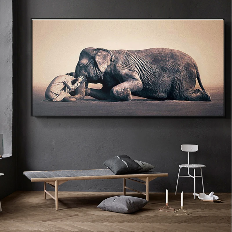 Современная Скандинавская картина маслом на холсте со слоном Будды в скандинавском стиле, постеры и принты, искусство, Настенная картина, украшение для дома без рамки
