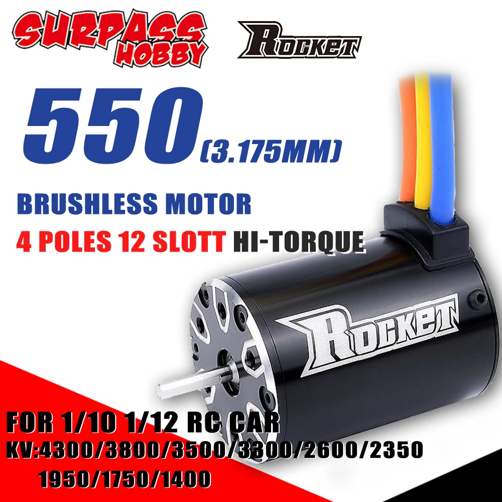 Бесколлекторный двигатель Surpass Hobby Rocket 550, 3,175 мм, 3800кв, 4300кв для радиоуправляемого автомобиля, грузовика, багги-монстр, дрифта, 110, 114