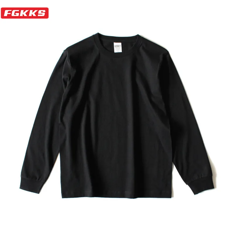 Мужская Повседневная футболка FGKKS, однотонная мягкая Базовая футболка из 100% хлопка, с длинным рукавом, в Корейском стиле, на осень