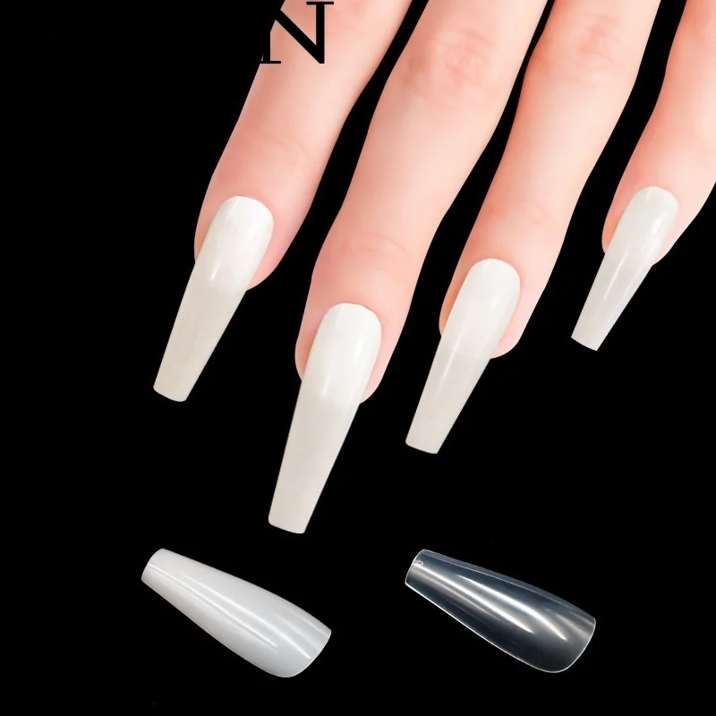 100 шт.кор. накладные гроб ногти балерина длинные прозрачныенатуральныебелые Искусственные ногти Типсы плоской формы полное покрытие маникюр