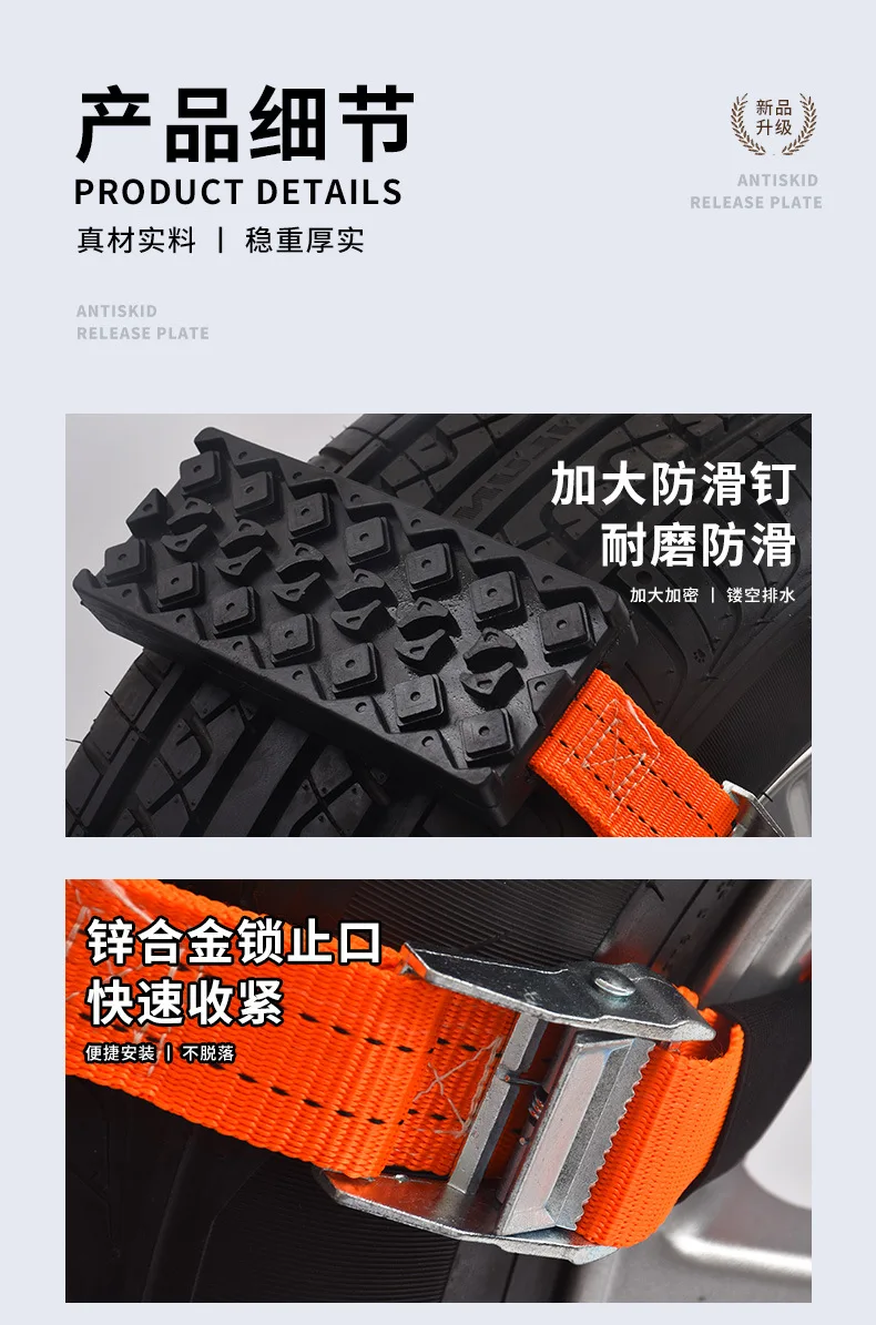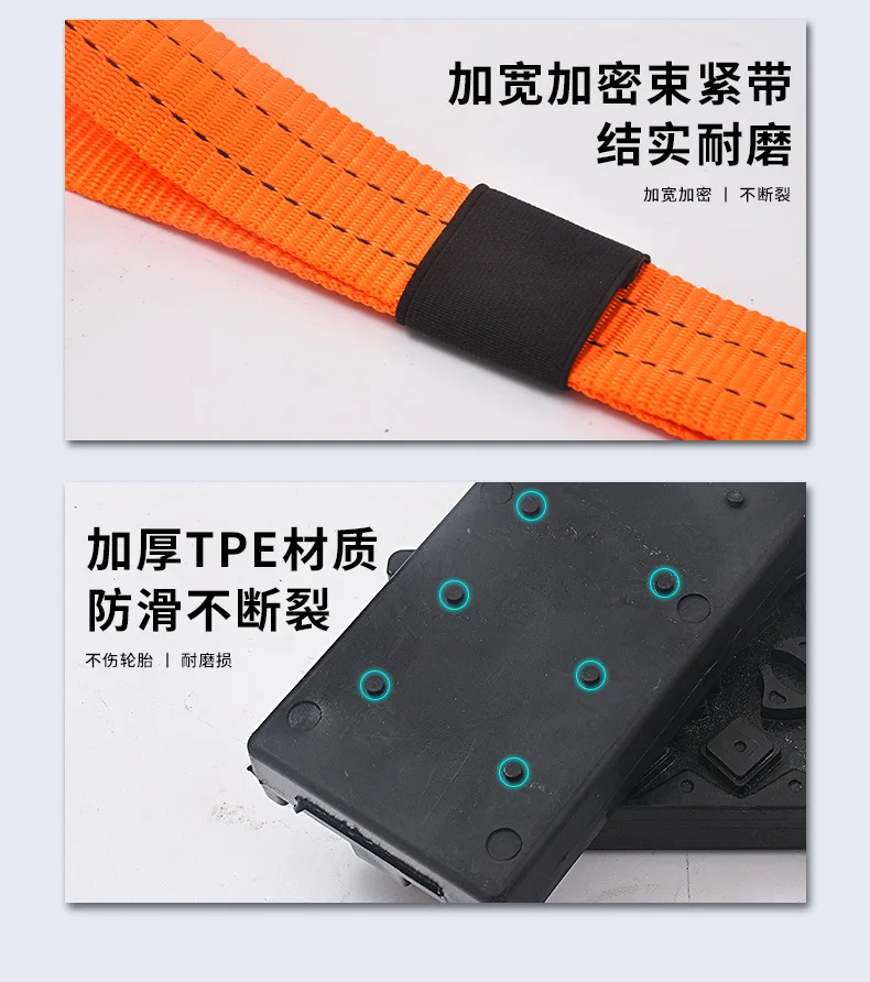 Спецификация: Цвет: черный + оранжевый Материал: ТЭП + нейлон Противоскольжения цепи Размер: длина 18 см, ширина 7,5 см, толщина 2,5 см, ширина ремня 3,8 см Длина нейлонового ремешка: 104 см Подходит для: всех видов шин Посылка включает в себя: 2 шт. х аварийная цепь для снега Автомобильная противоскользящая цепь Функции: Эта противоскользящая Снежная цепь предназначена для безопасности автомобиля. Обработанная шероховатая поверхность Увеличивает трение автомобиля и дороги. Он защищает шины автомобиля от проскальзывания и обеспечивает безопасное и стабильное вождение. Особенно полезно в снежных и грязных дорожных условиях. Обязательный товар для Зимнего вождения. Изделие состоит из 2 Противоскользящих цепей для галстуков, изготовленных из нейлонового материала. Предназначен для использования, когда ваш автомобиль застревает. Он имеет хорошую производительность противоскольжения, ломает лед и сжимает дорогу. Необходимый инструмент для путешествий.