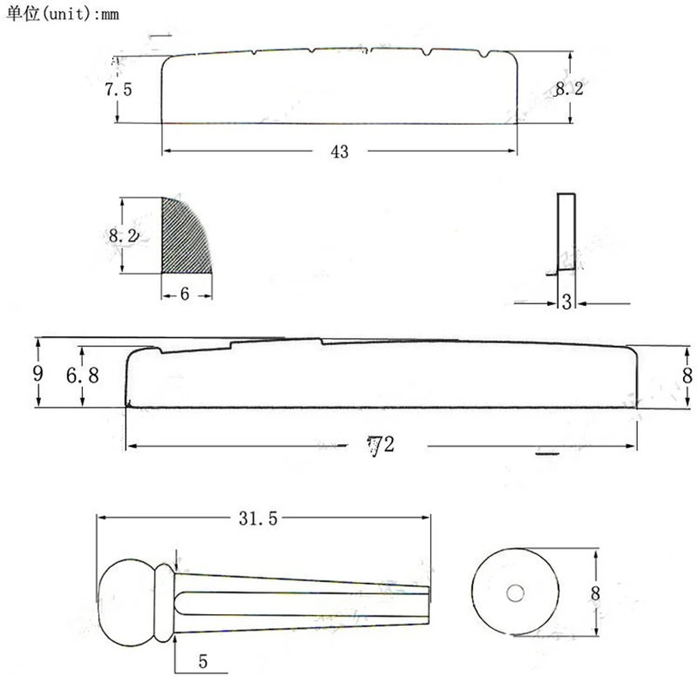 6-ой гитары для порожка седло гайка акустическая хвостовой Портативный белый черный пластик аксессуары для гитары