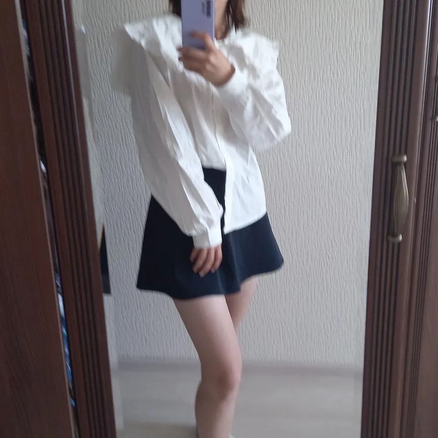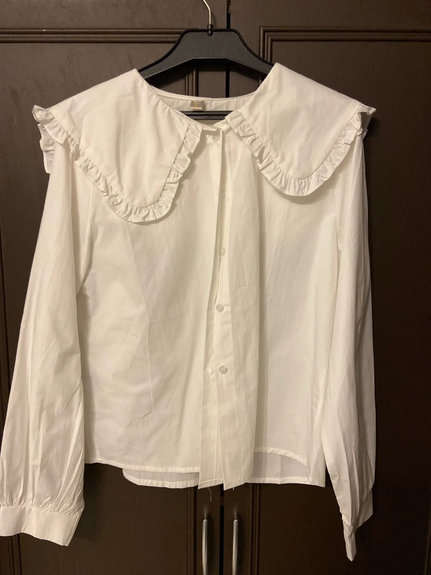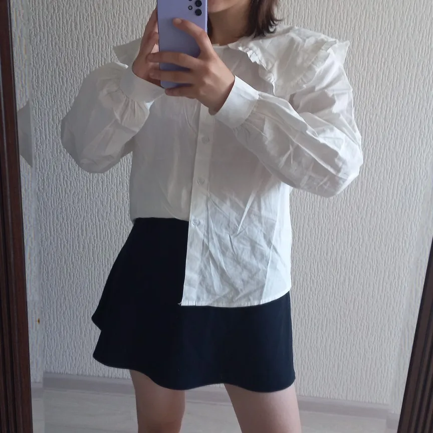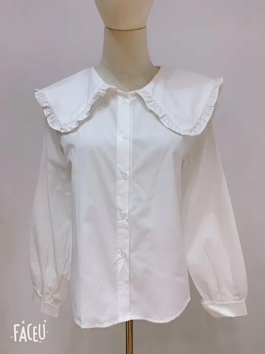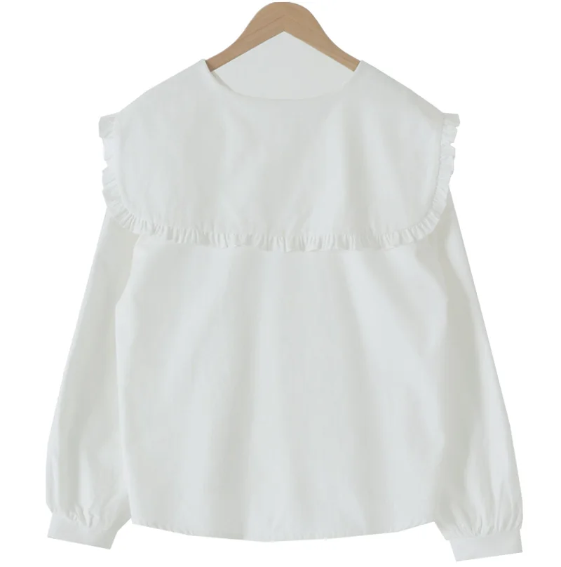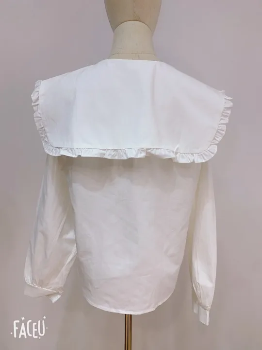 Блузка женская хлопковая, с длинным рукавом, весенняя, белая