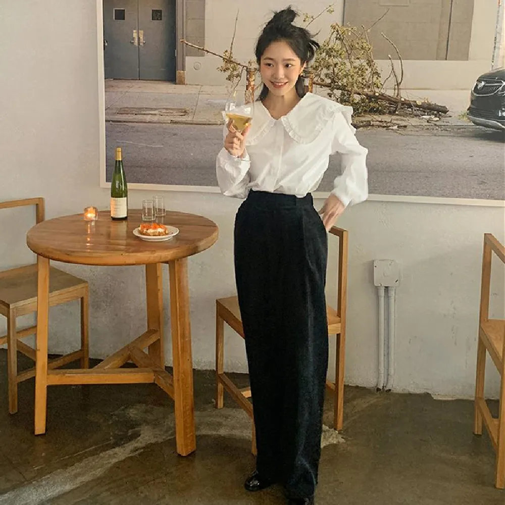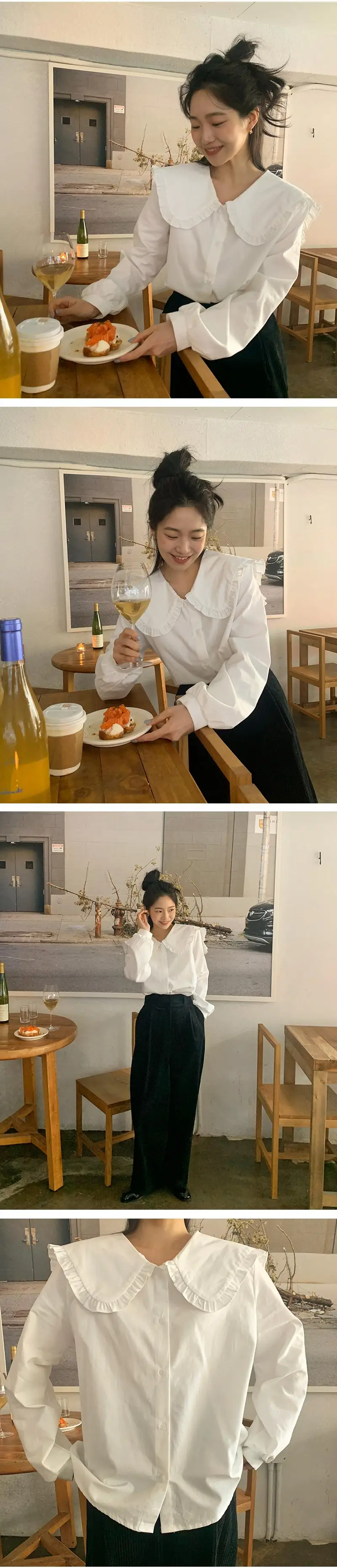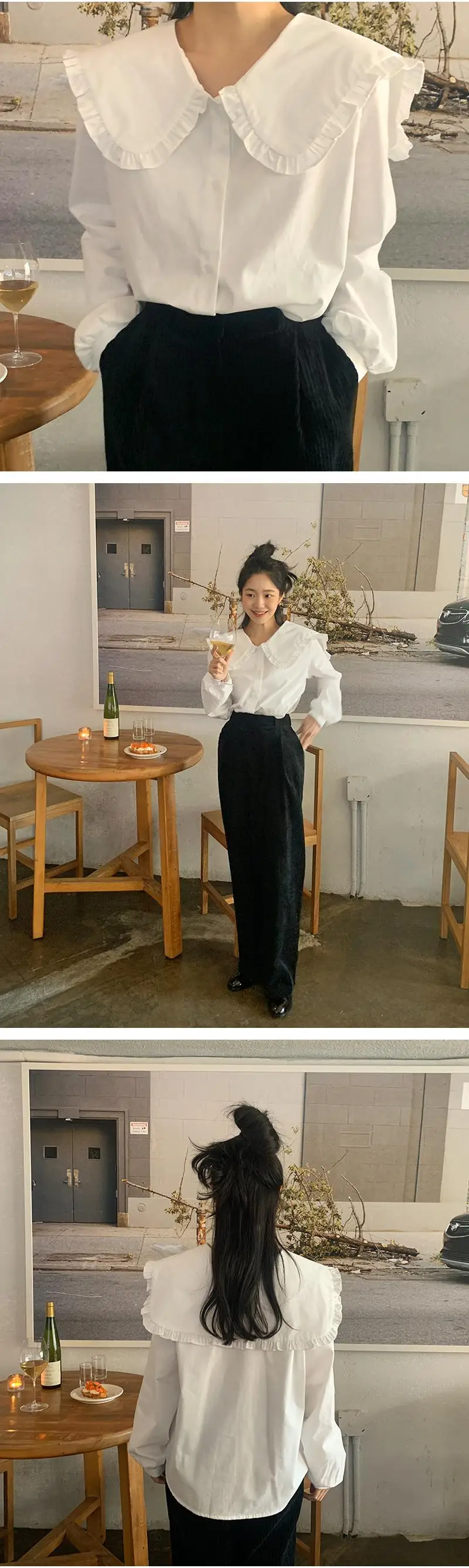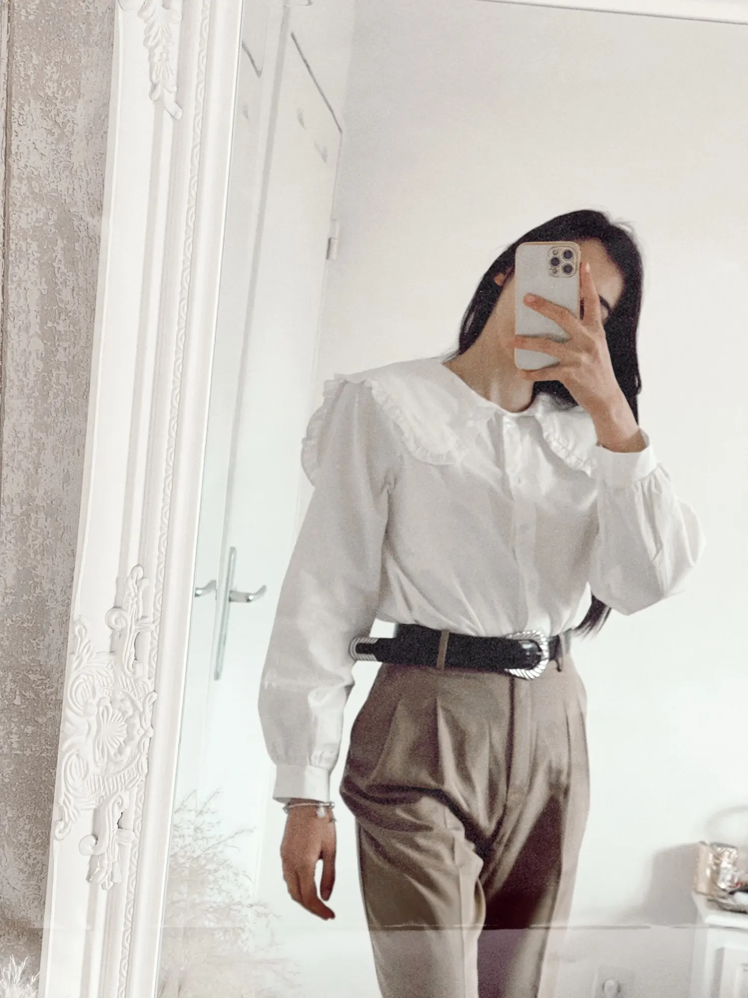 Блузка женская хлопковая, с длинным рукавом, весенняя, белая