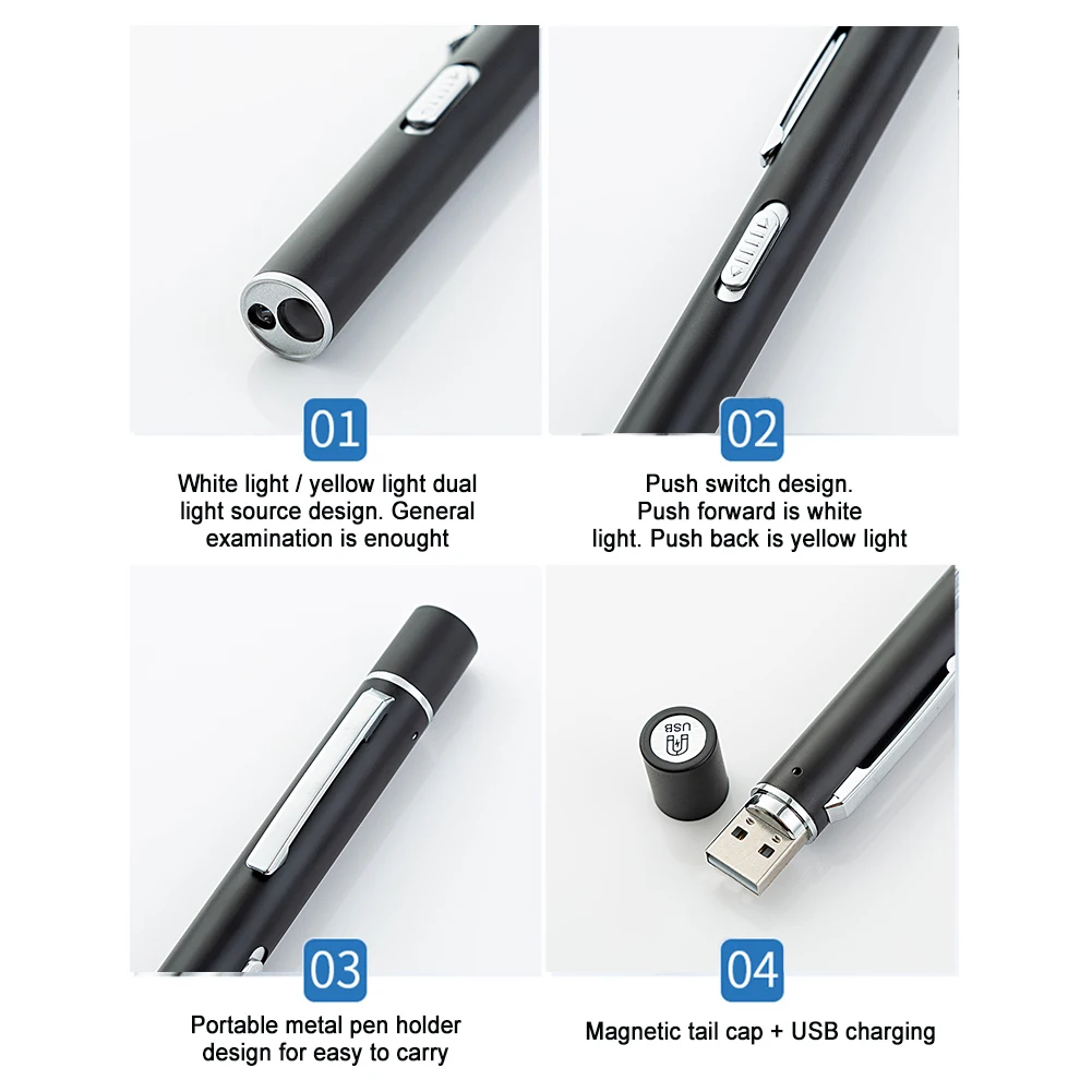 Портативная Медицинская ручка, ручка с зарядкой от USB, двойсветиль...