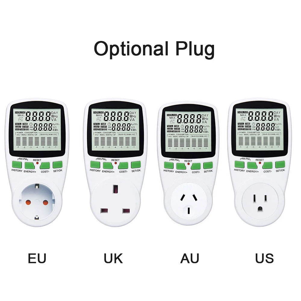 Это основной многофункциональный инструмент, который может отображать различные физические параметры, такие как напряжение, ток, мощность, емкость, энергию и время работы в режиме реального времени. И счетчик использует цветной ЖК-дисплей как дисплей, данные дисплея более всеобъемлющие, четкие и легко наблюдать.Особенности:ЖК-дисплей, день, VA, WHz, VA, время, мощность, одновременно отображается, комплексно и четко.Установленный дисплей мощности (Вт)-0 Вт-9999 Вт, но фактический дисплей мощности (Вт)-0-3680 Вт.Отображение времени: 0s-9999 дней, Диапазон отображения напряжения: 0-9999 в, отображение тока (Ампер): 0,000A-16,000A.Цена дисплей-диапазон: 0,00 стоимость/кВтч метр до 99,99 стоимость/кВт.Общее количество кВт/ч и отображение стоимости: 0.000квт/ч-9999квт/ч, 0,00 COST-9999COST.Характеристики:Название: разъем питанияМатериал: пластикЦвет: белыйВилка: ЕС, Австралия, Великобритания, США(Опционально)Мощность Потребляемая мощность: 0,5 WЧастота: 50 ГцРабочий ток: макс. 16АУстановочный дисплей мощности (Вт): 0-9999 Вт, но фактический дисплей мощности (Вт)-0-3680 ВтОтображение времени-диапазон: 0 секунд-9999 днейДисплей напряжения-Диапазон: 0V-9999VОтображение тока (Ампер): 0,000A-16,000AЦена дисплей-диапазон: 0,00 стоимость/кВтч метр ¡«99,99 стоимость/кВтч метрОбщее количество кВт/ч и отображение затрат: 0,000квт/ч-9999квт/ч,0,00 COST-9999COSTРазмер товара: 150*75*35 мм/5,91*2,95 * 1.38inВес изделия: 200 г/7,05 унцийРазмер посылка: 160*85*45 мм/6,30*3,35 * 1.77inПосылка Вес: 220 г/7,76 унцииУпаковочный лист:1 * Разъем питания
