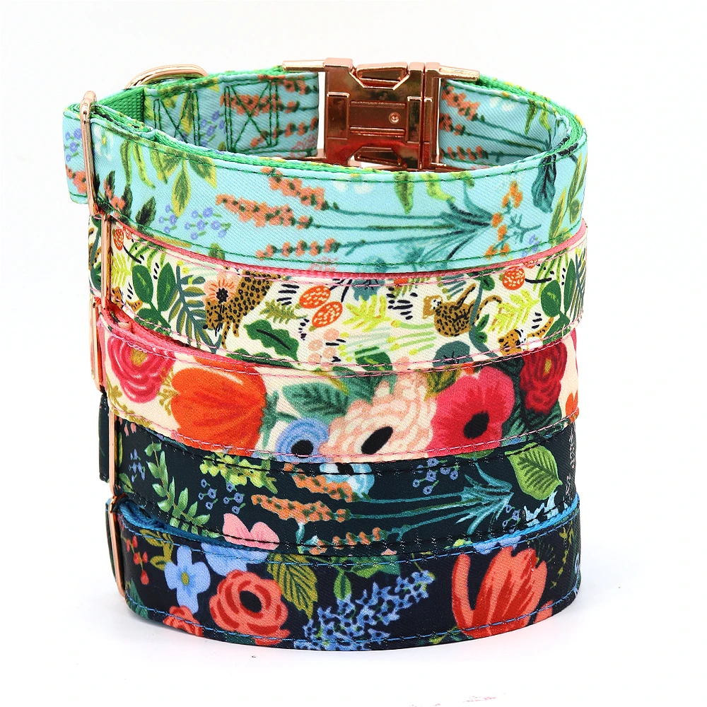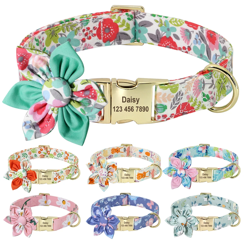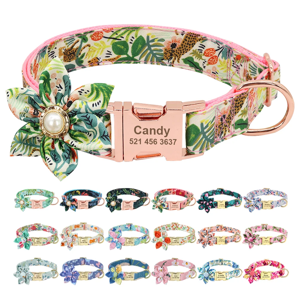 Индивидуальный ошейник для собак, ошейник с принтом на заказ для маленьких, средних и больших собак, Бесплатная гравировка, цветочные аксессуары для собак