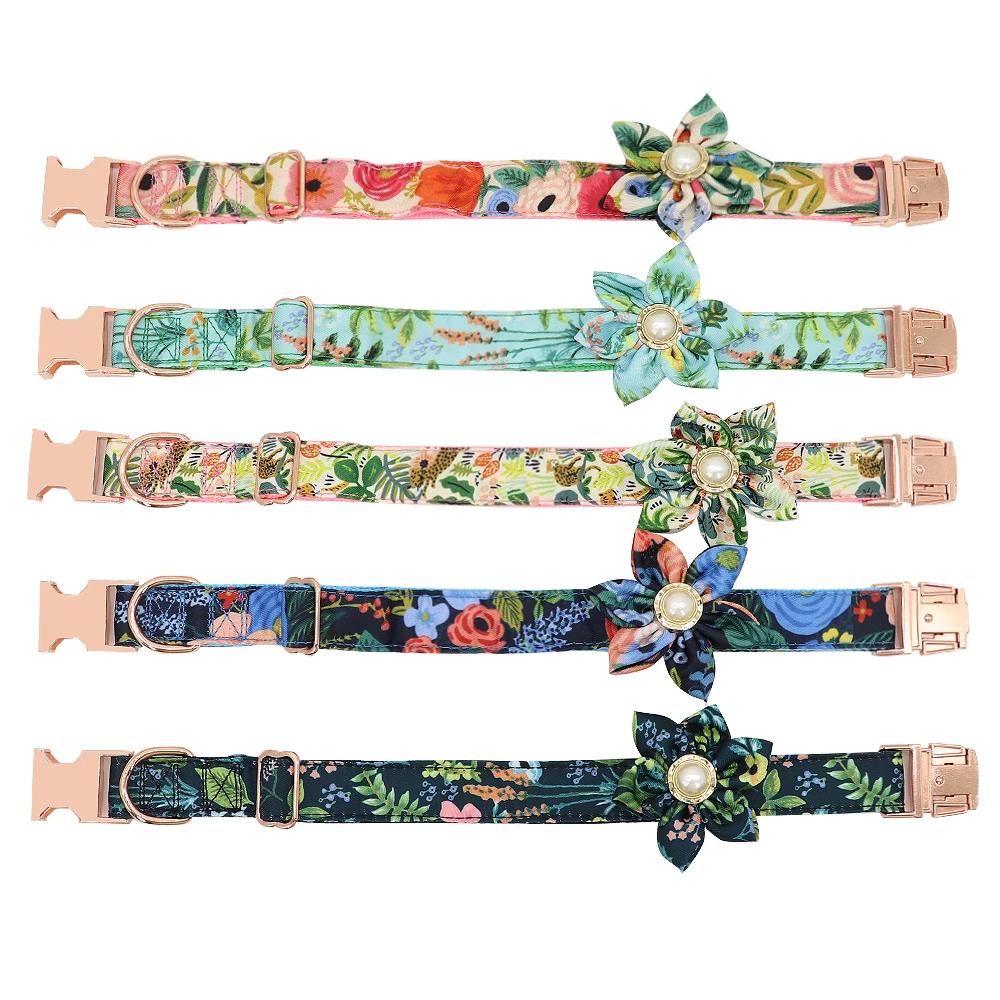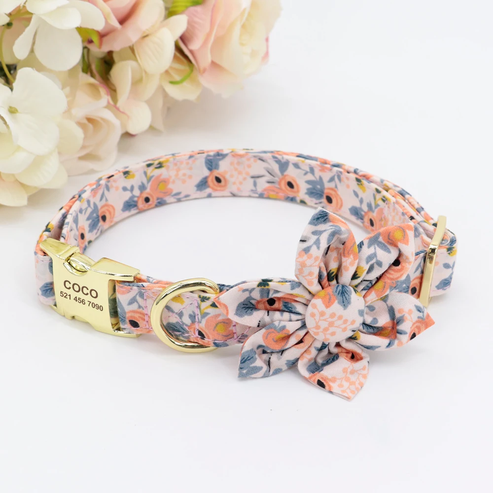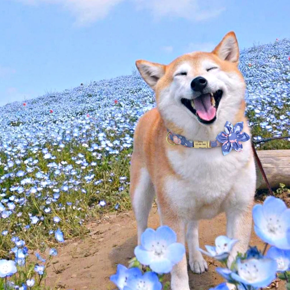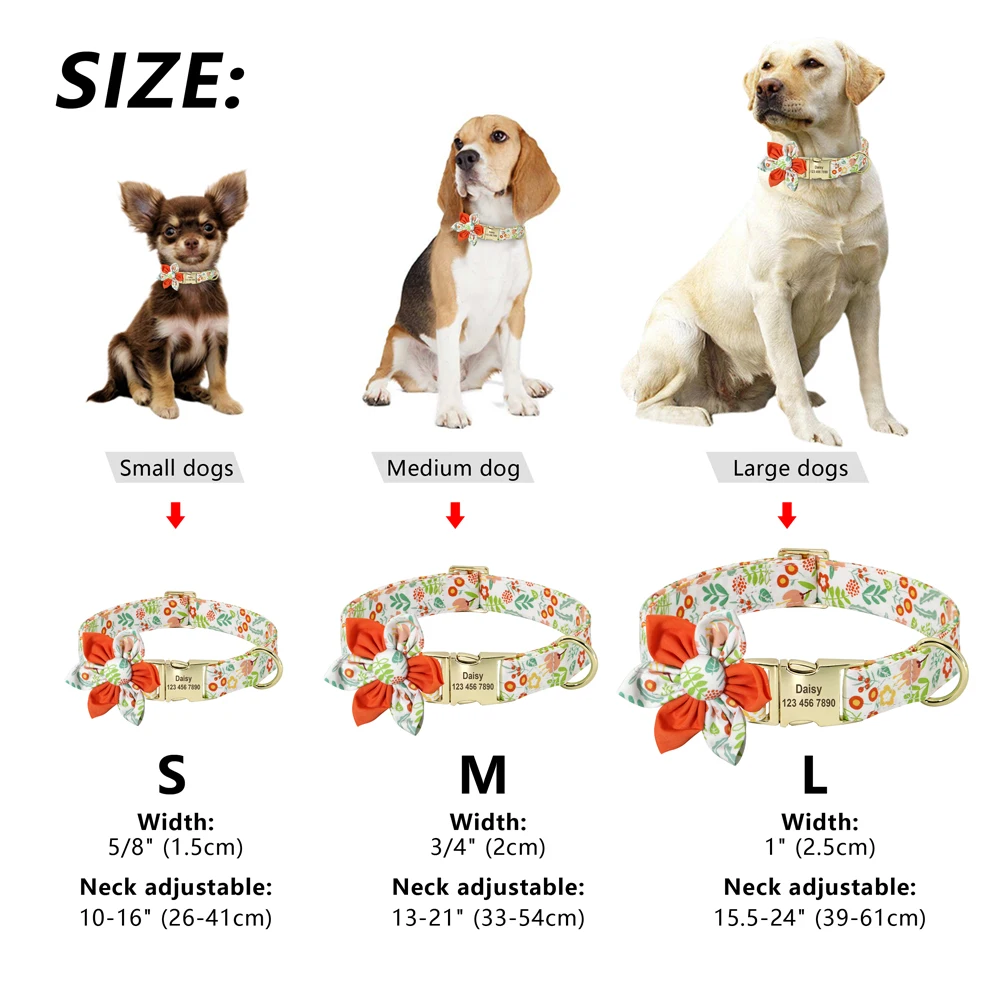 Индивидуальный ошейник для собак, ошейник с принтом на заказ для маленьких, средних и больших собак, Бесплатная гравировка, цветочные аксессуары для собак