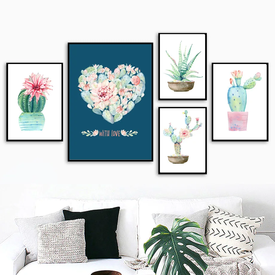 Картина на холсте с изображением листьев, цветов, суккулентов, худо...