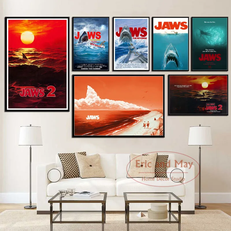 Плакаты и принты из фильмов челюсти, Классические фильмы, фильмы ужасов, винтажные плакаты на холсте, декоративные постеры для домашнего декора