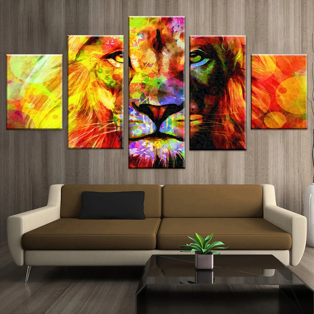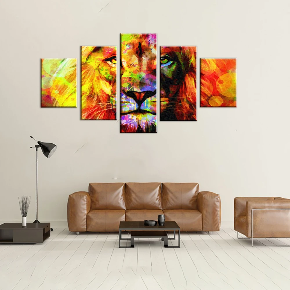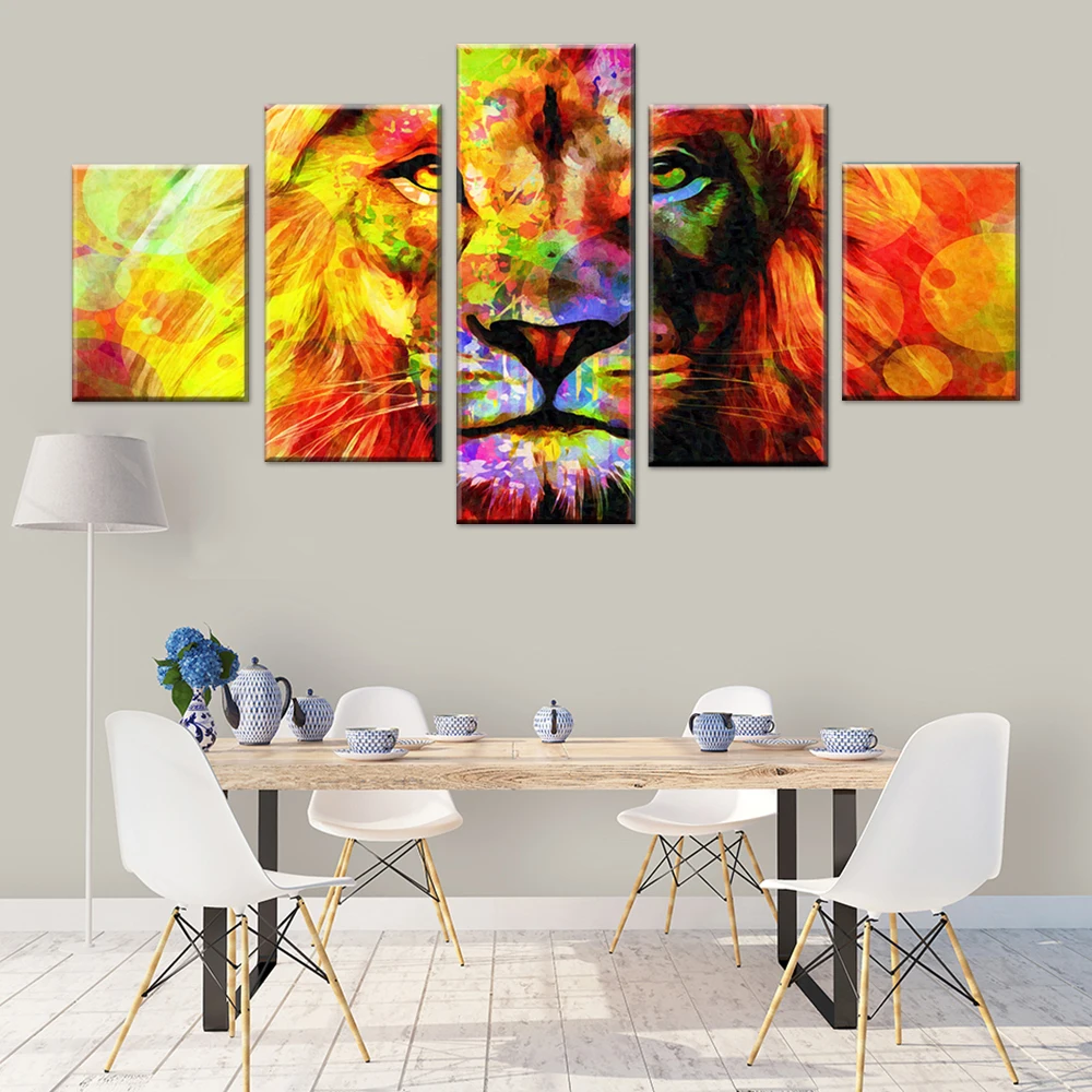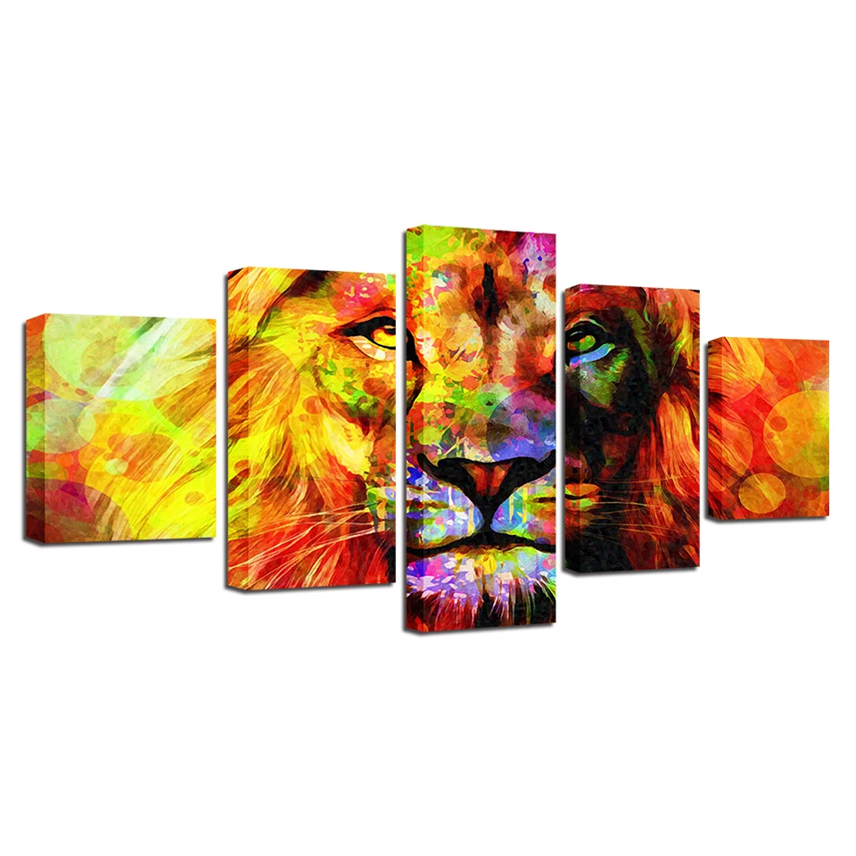 Модульные картины на холсте с животными, 5 шт., HD печать, абстрактный цвет, картина с Львом, декор для гостиной, настенные художественные плакаты, каркас