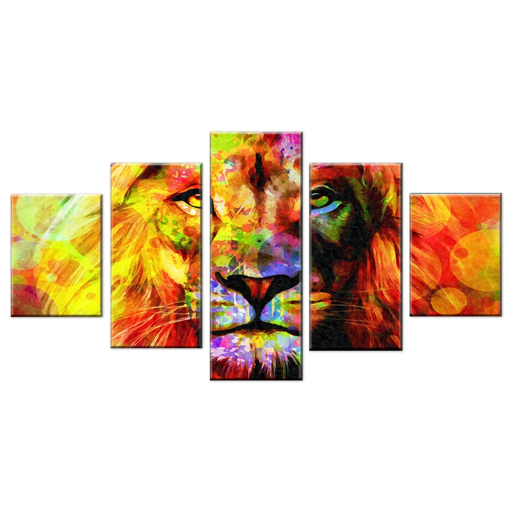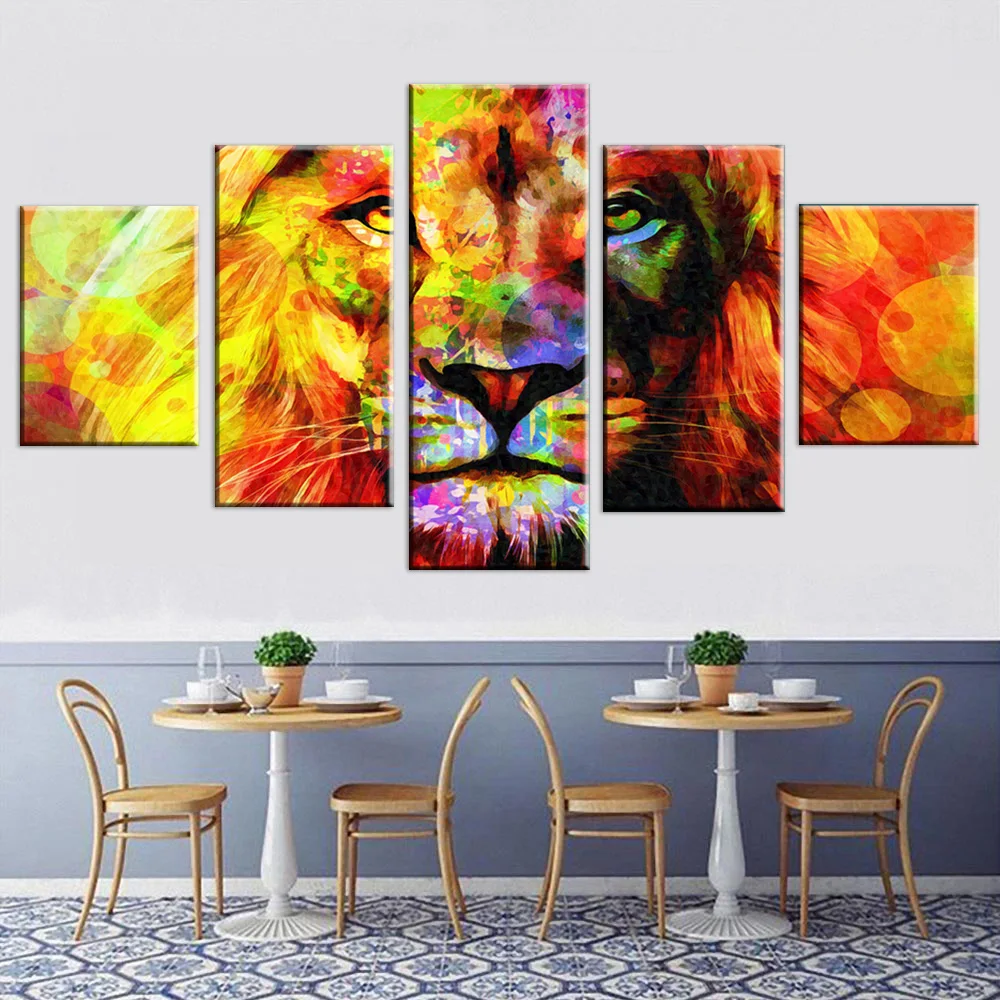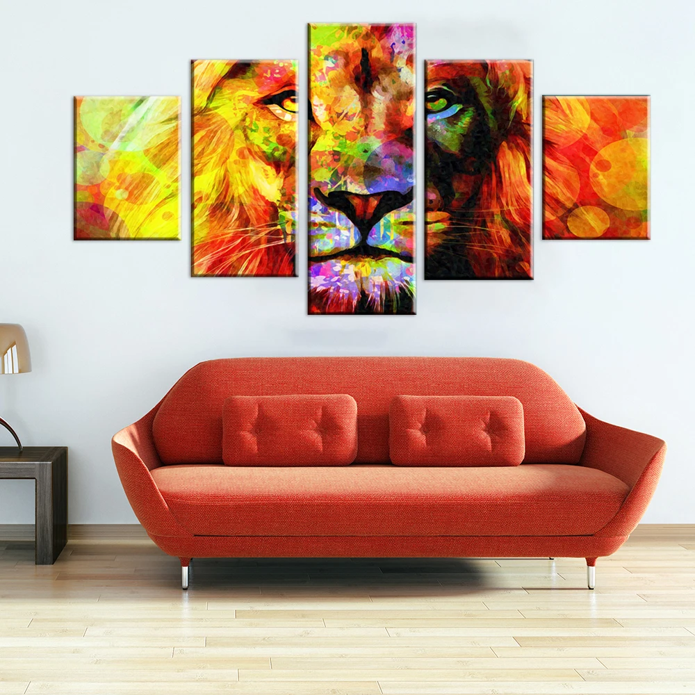 Модульные картины на холсте с животными, 5 шт., HD печать, абстрактный цвет, картина с Львом, декор для гостиной, настенные художественные плакаты, каркас