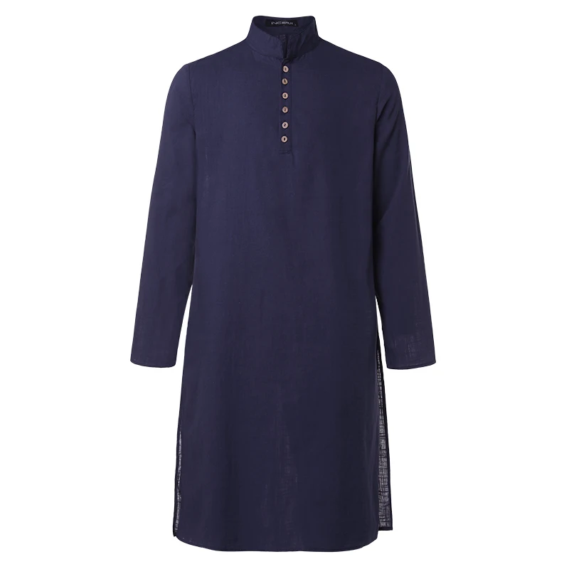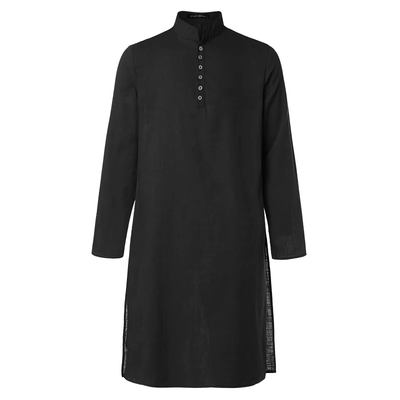 Рубашка INCERUN мужская с воротником-стойкой, винтажная блузка с длинным рукавом, на пуговицах, Исламская блузка, Повседневная однотонная длинная стильная мусульманская одежда, S-5XL