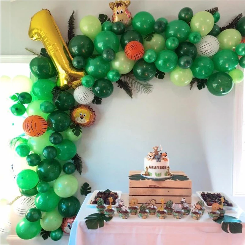 Воздушные шары с принтом животных джунглей, латексные шары с леопардовым принтом, лес, зеленый пальмовый лист, шар в стиле сафари, дикий декор для дня рождения для детей