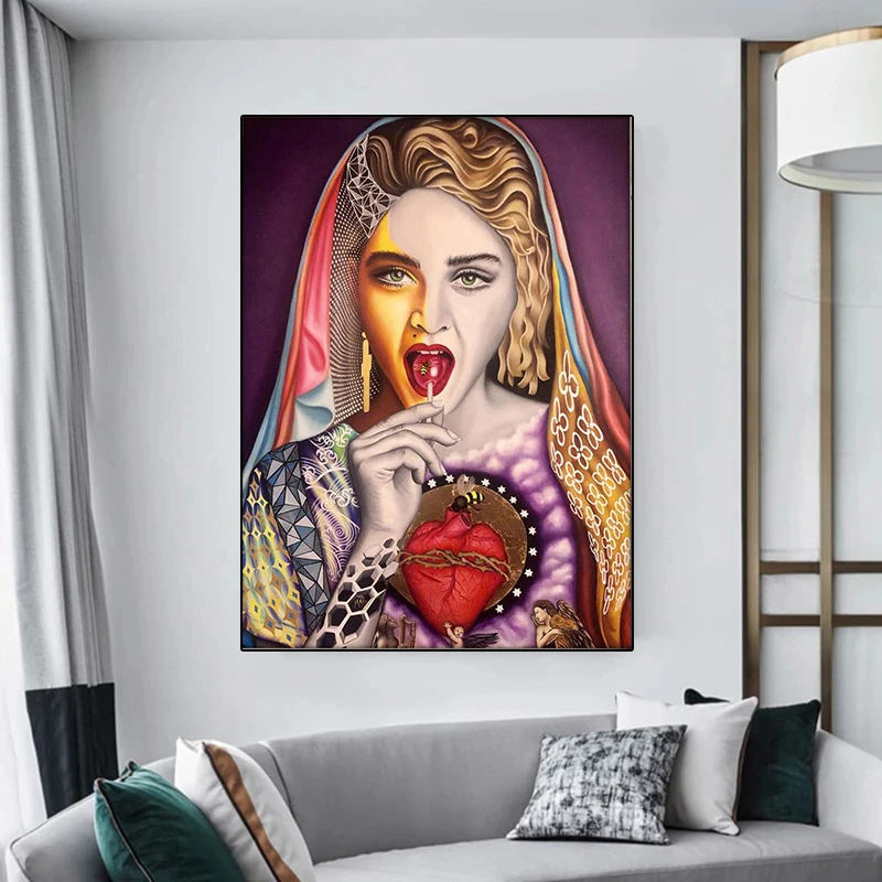 Классическая фигурка, красочные картины на холсте, знаменитые посте...