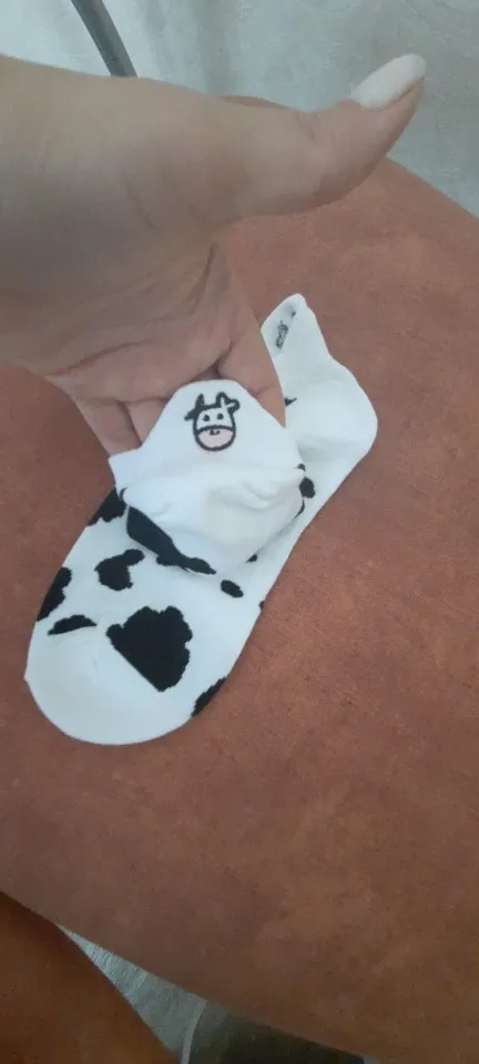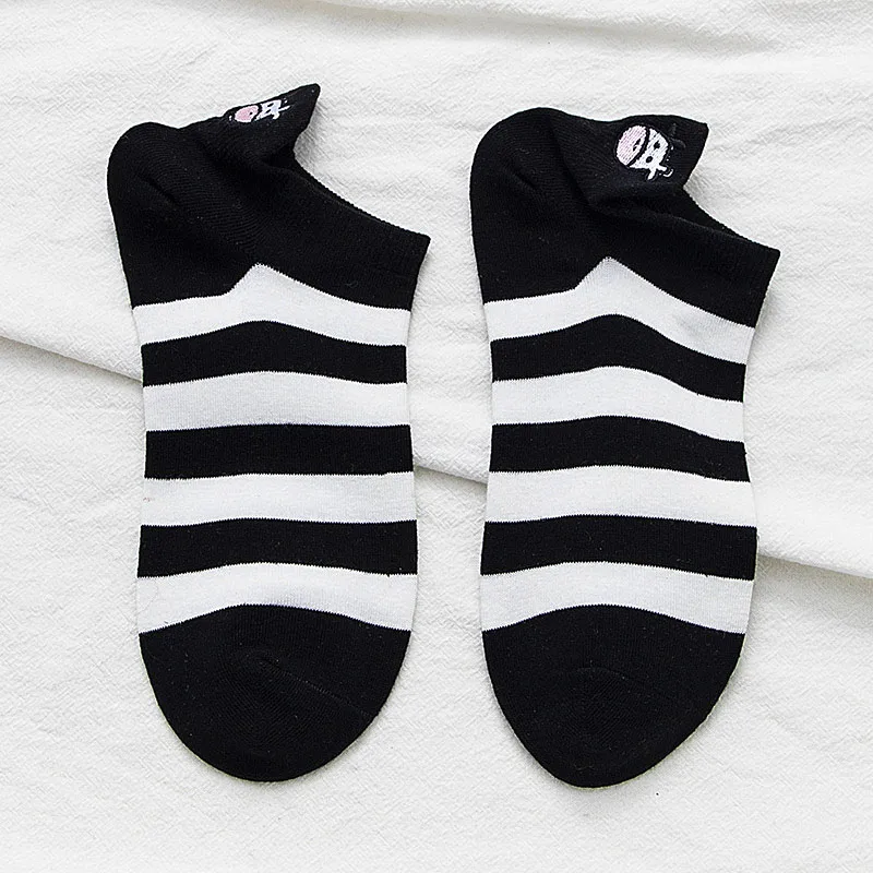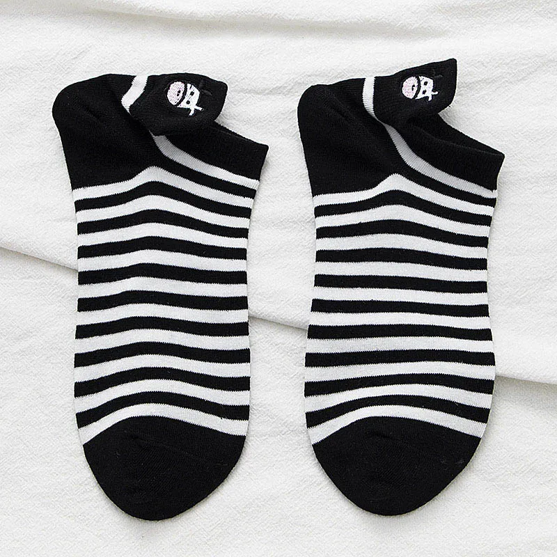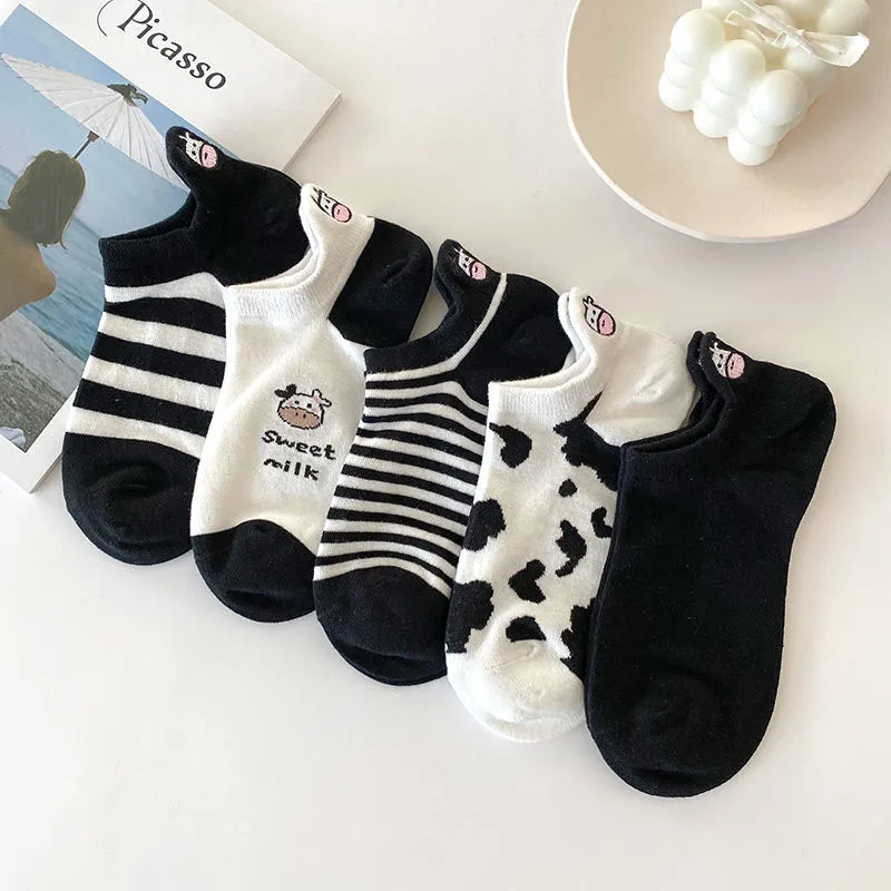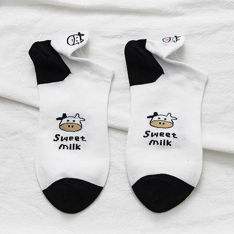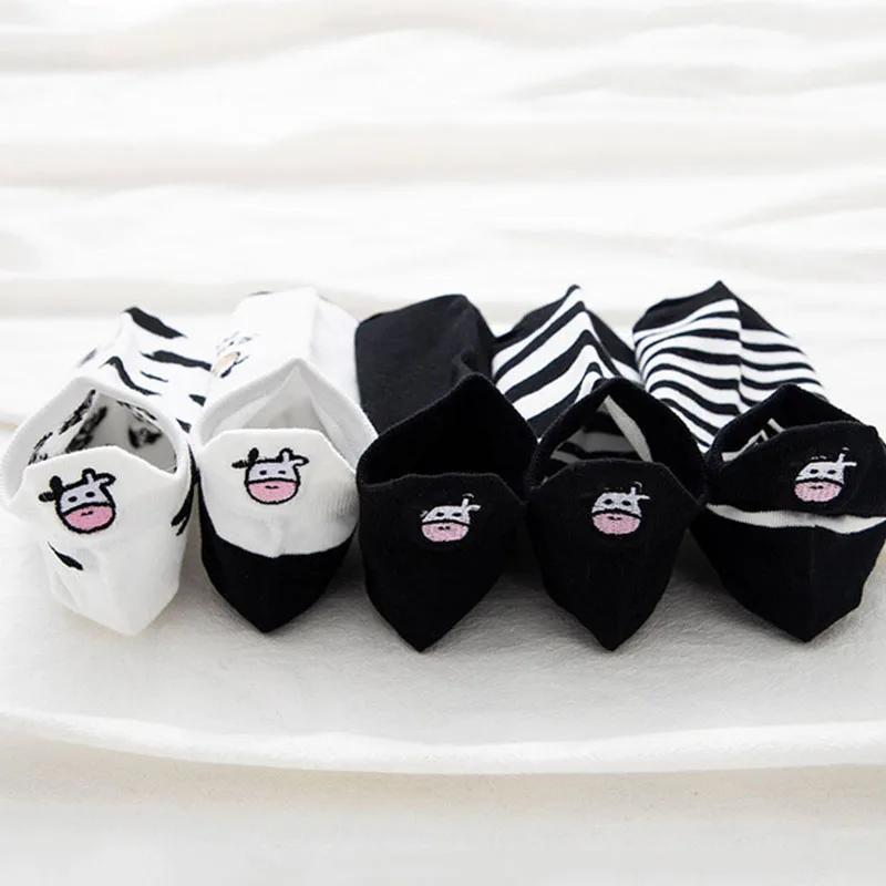 Носки женские короткие в полоску с мультяшной вышивкой, модные с коровьим принтом для девочек, весна-лето