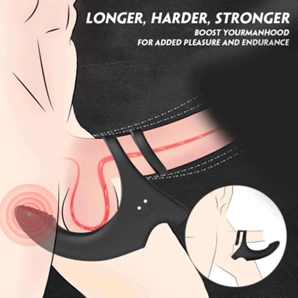 Вибрирующее кольцо на пенис с фиксатором для промежности массажное ...