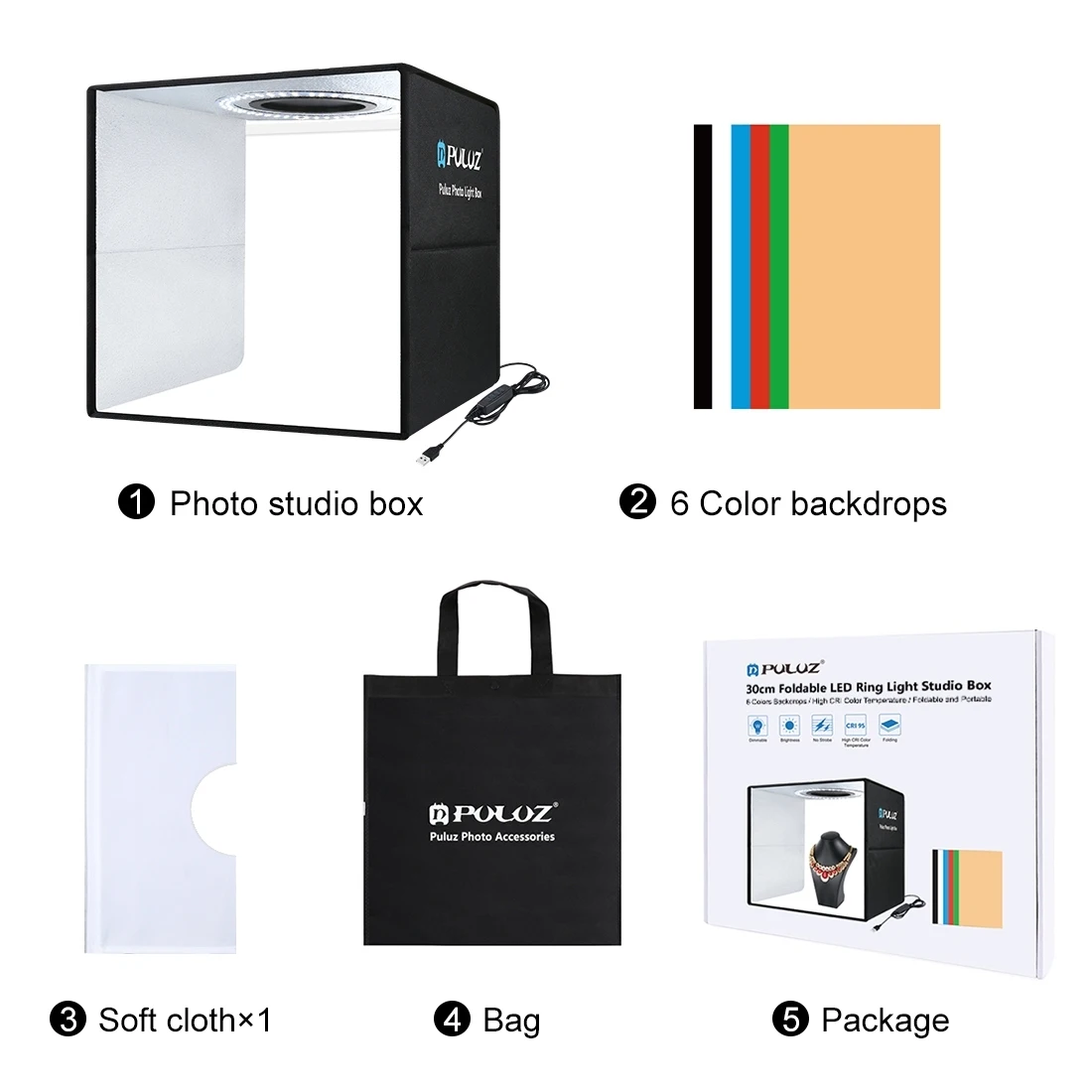 Световой короб PULUZ для фотостудии, складной портативный оссветильник ительный прибор с кольцом 25 см, 612 цветов для фотосъемки