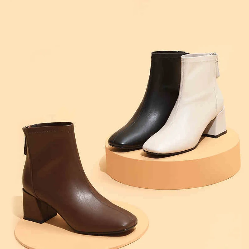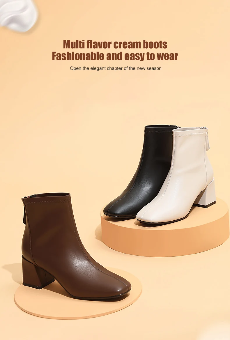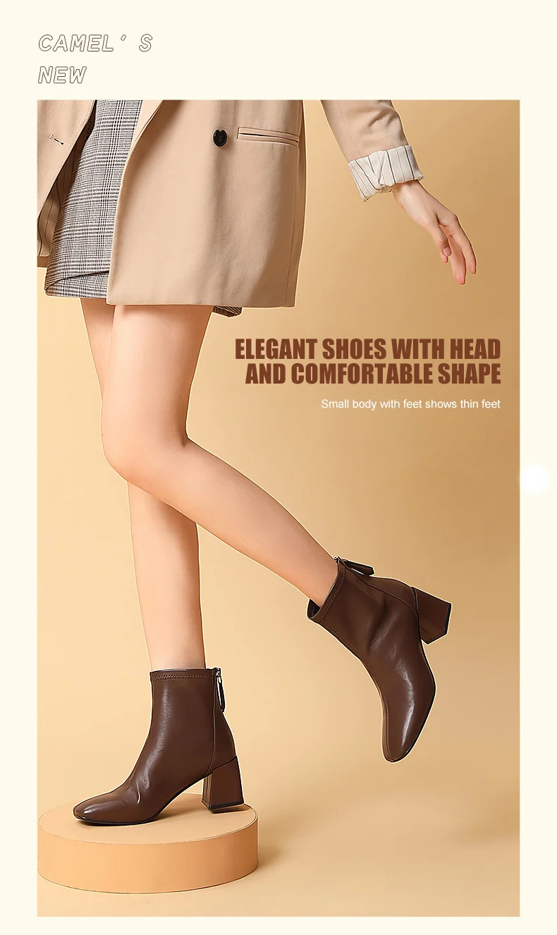 Женские ботильоны на высоком каблуке CAMLE, элегантные ботинки с квадратным носком, на толстом каблуке, весна-осень 2021
