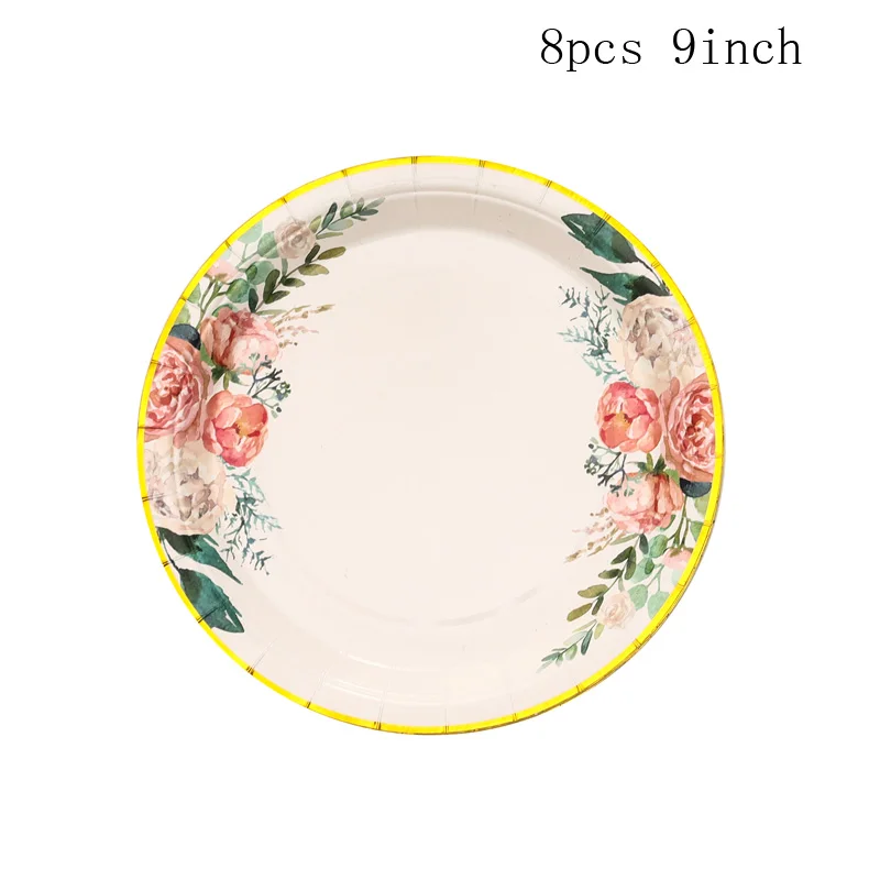 Одноразовая бумажная посуда с цветочным рисунком, бумажные Салфетка под тарелку кружку для чайных вечеринок, украшения для детского праздника, дня рождения, свадьбы
