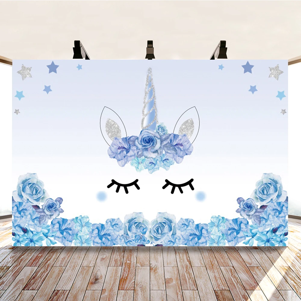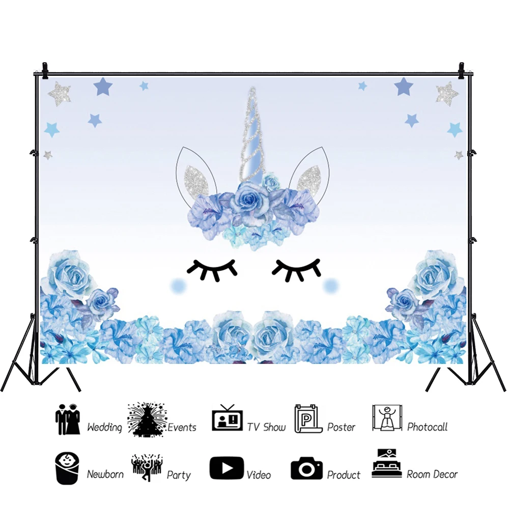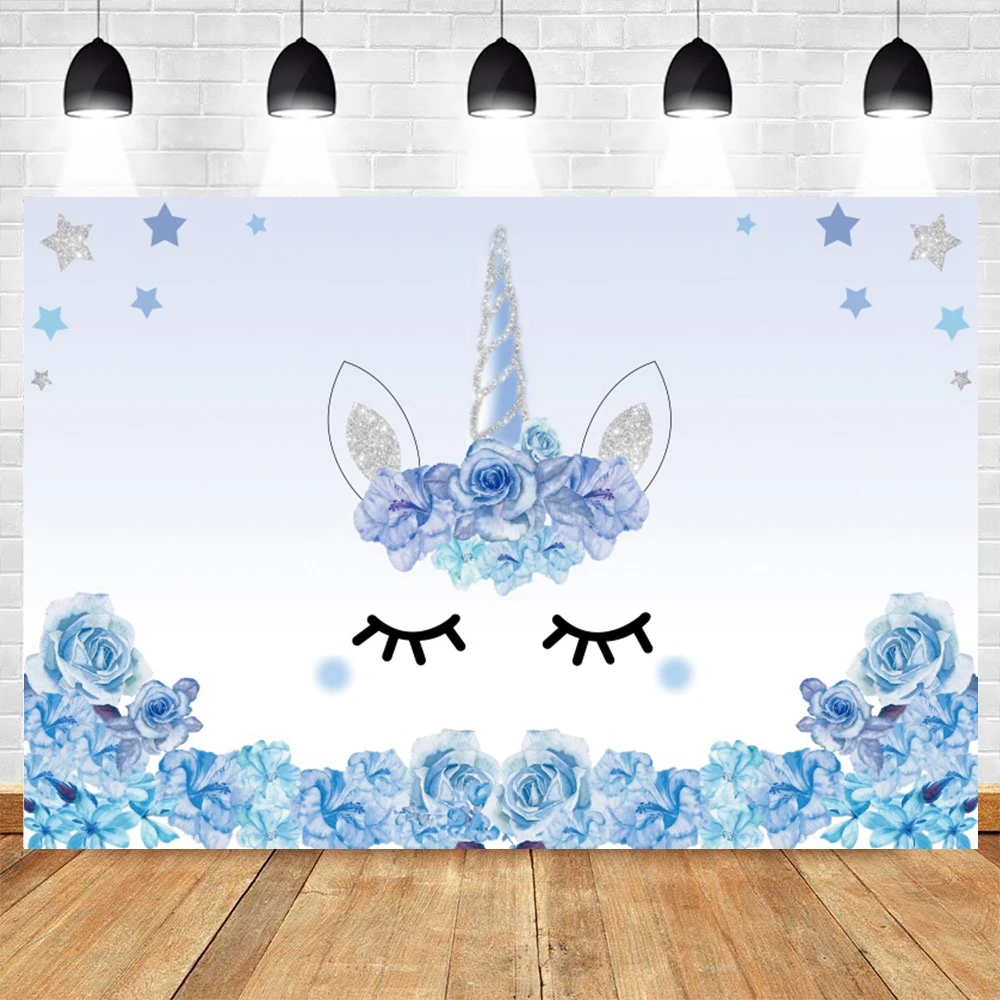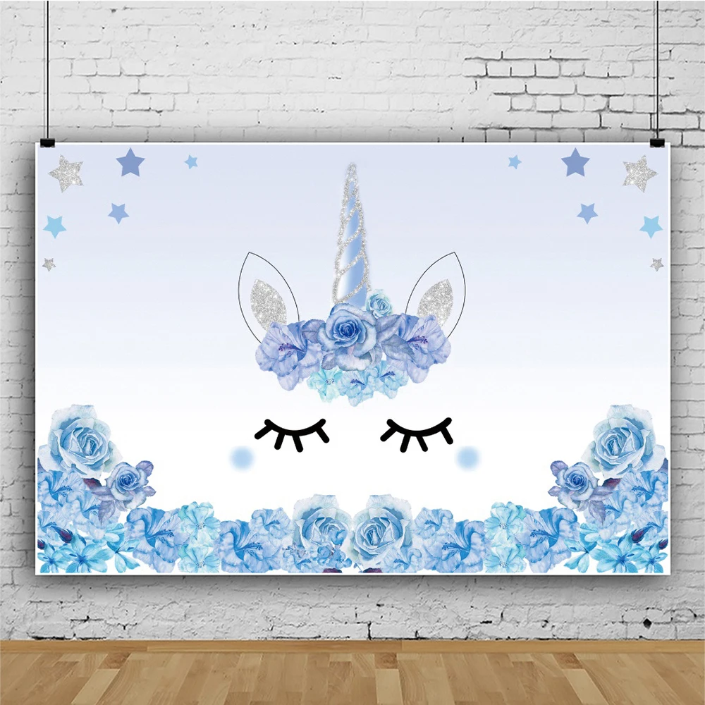 Фоны Yeele для детского дня рождения синие цветы Единорог вечерние фотозона фото плакат фотографический фон для фотостудии реквизит