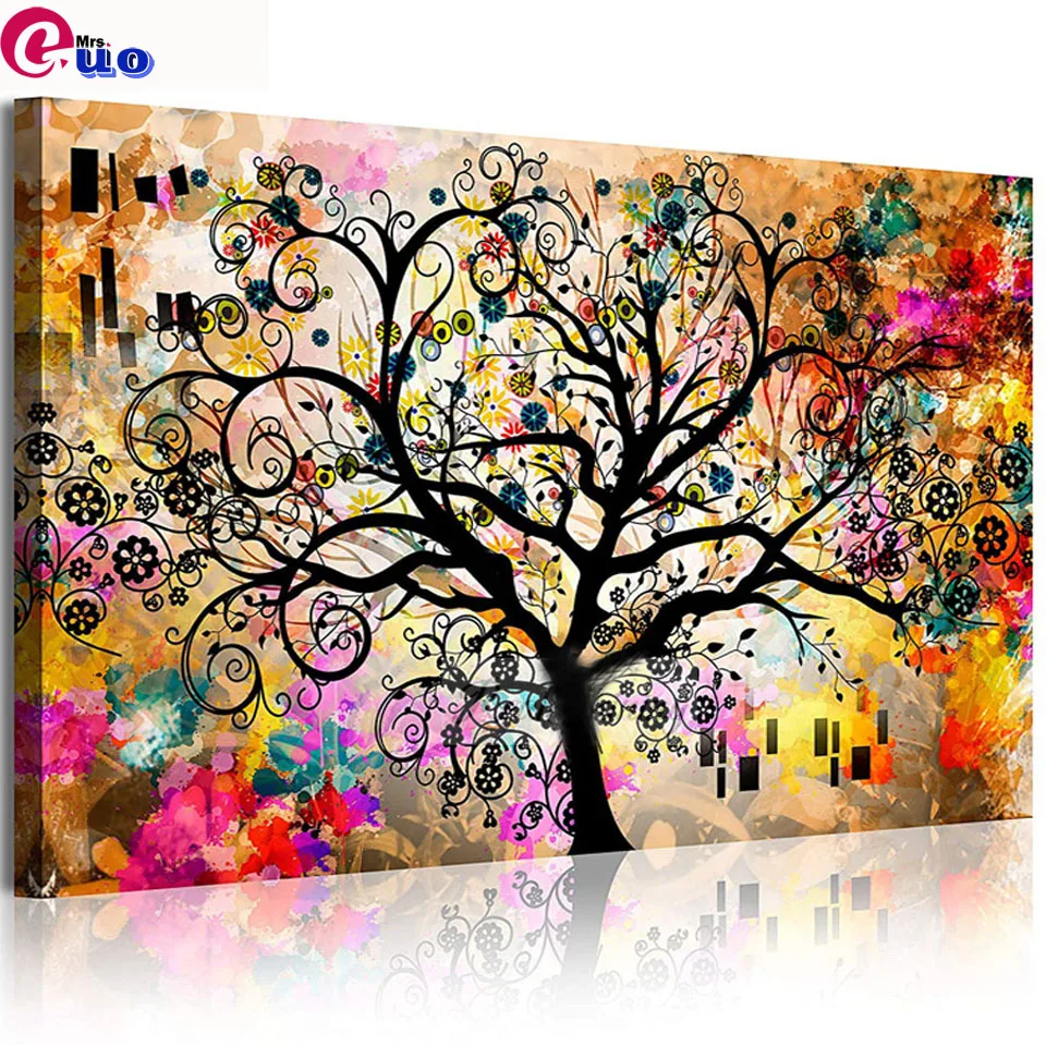 Полностью квадратная круглая дрель 5D DIY Алмазная картина абстрактное красочное Дерево жизни вышивка крестиком Мозаика алмаз искусство